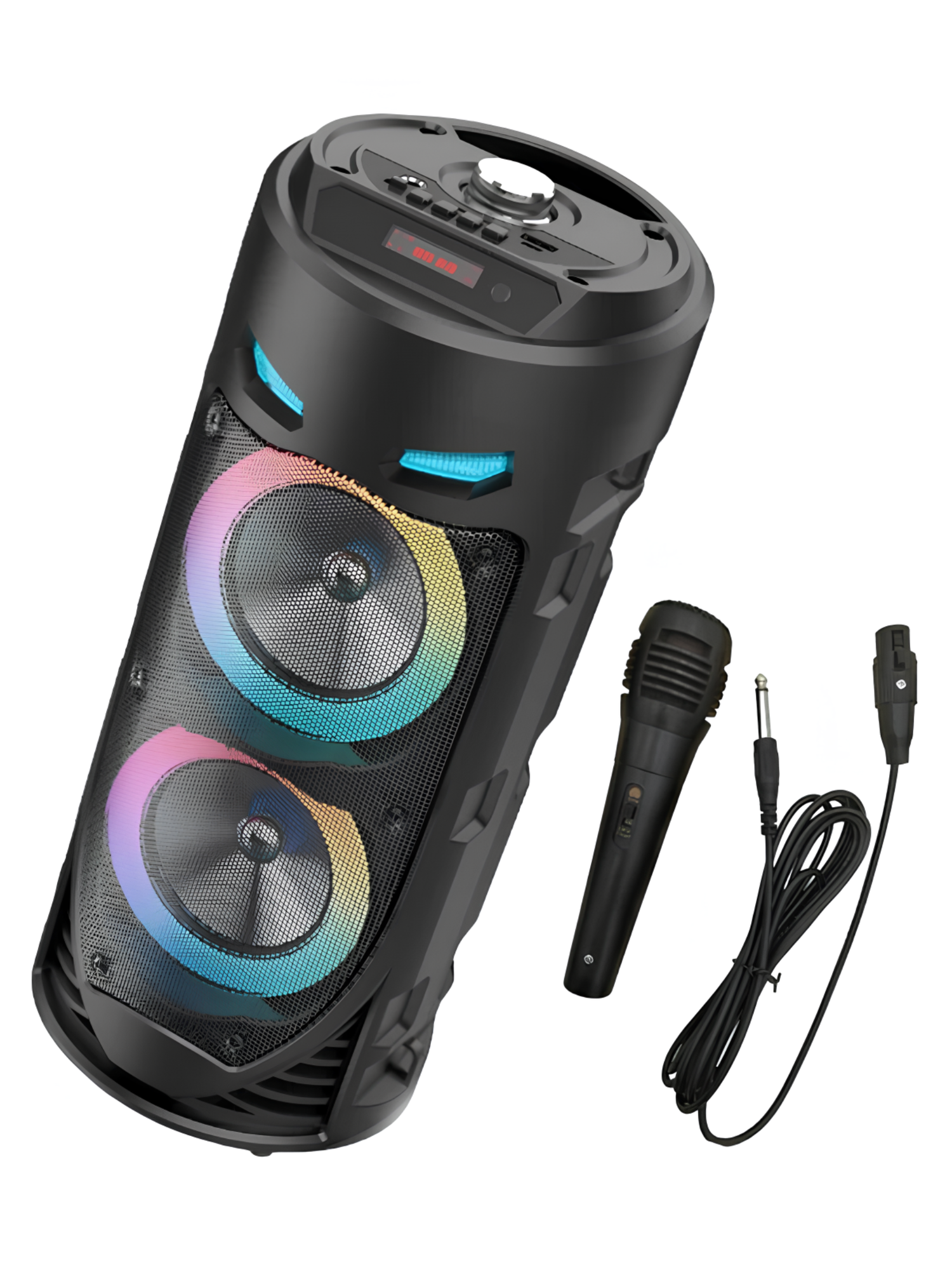 Колонка портативная беспроводная Party Time 6201, с подсветкой, на дачу и домой, с караоке, с радио, 60 см, черная
