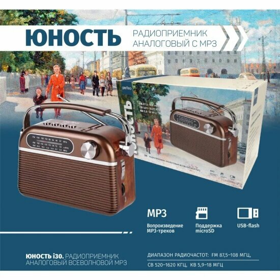 Радиоприемник аналоговый Perfeo Юность коричневый интересное: