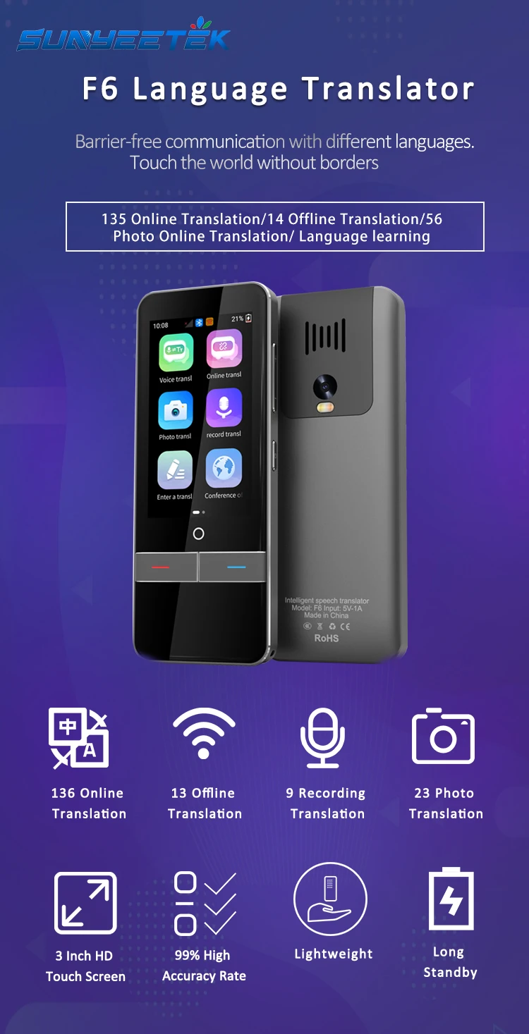 Купить Карманный электронный переводчик, онлайн -офлайн , голосовой , переводчик текста TRANSLATOR F6