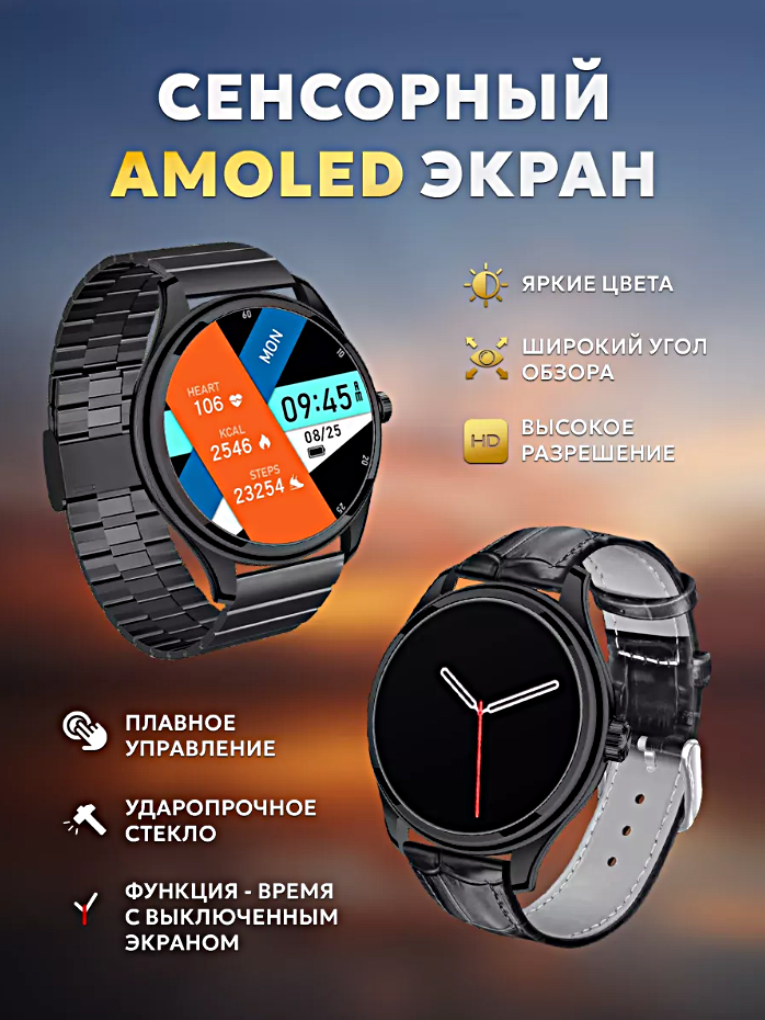Cмарт часы LK WATCH 7 Умные часы PREMIUM Series Smart Watch AMOLED, iOS, Android, 3 ремешка, Bluetooth звонки, Уведомления, Черный интересное: