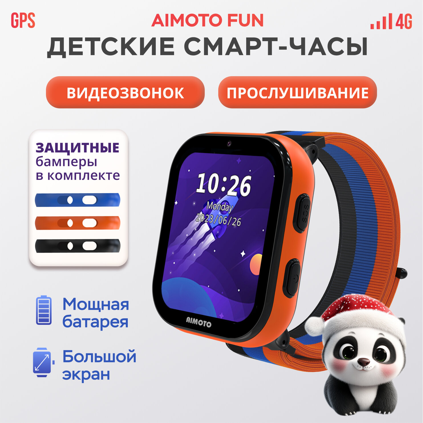 Купить Смарт часы детские Fun с видеозвонком + 3 бампера, мощная батарея 700 мАч, GPS геолокацией, смарт часы детские 4G с прослушкой, смарт часы детские для девочек и мальчиков, для школьника, черный/синий
