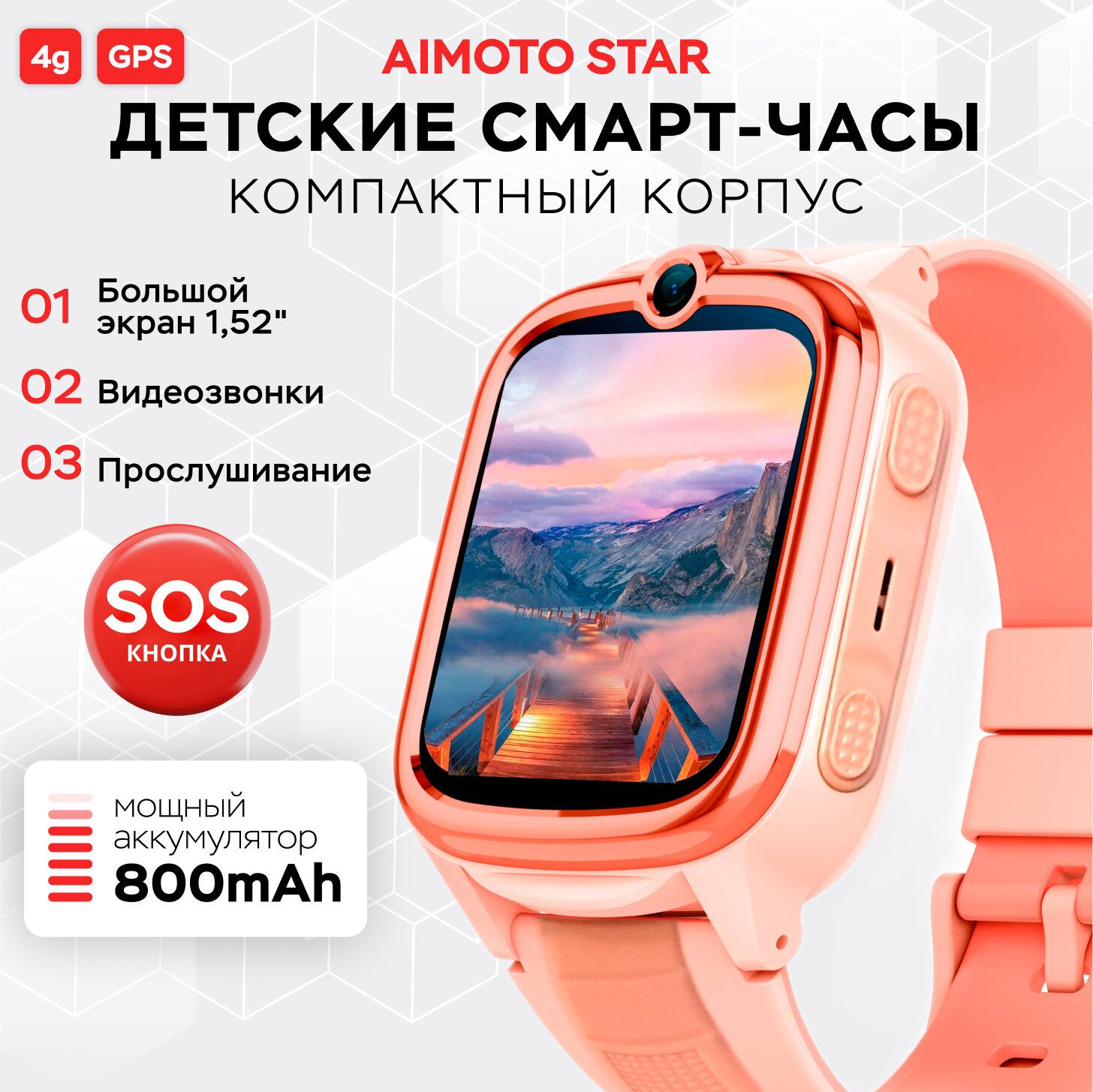 Купить Смарт часы детские Star с видеозвонком, с мощной батареей 800 мАч, GPS геолокацией, смарт часы детские 4G в компактном корпусе с прослушкой, смарт часы детские для девочек и мальчиков, школьника, розовый