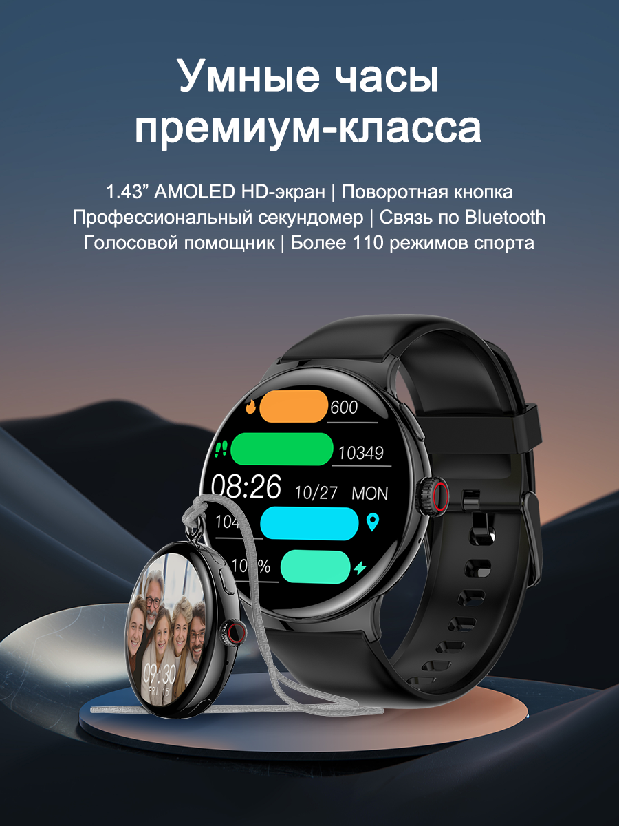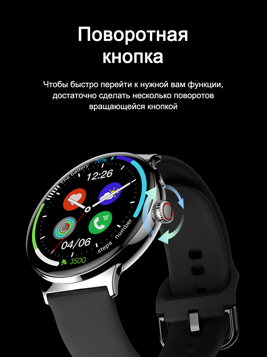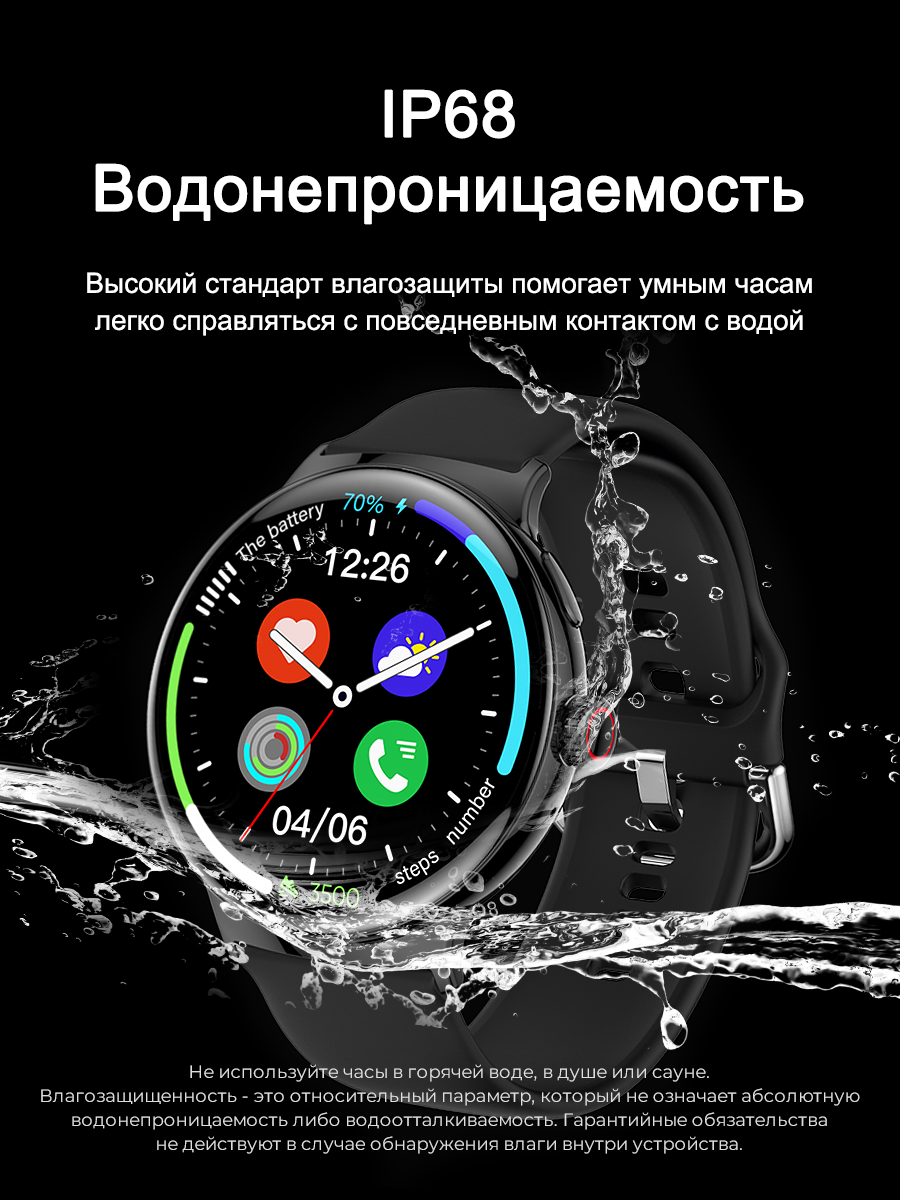 Смарт-часы умные наручные SMART PRESENT LA99 женские и мужские, круглые, водонепроницаемые, черные интересное: