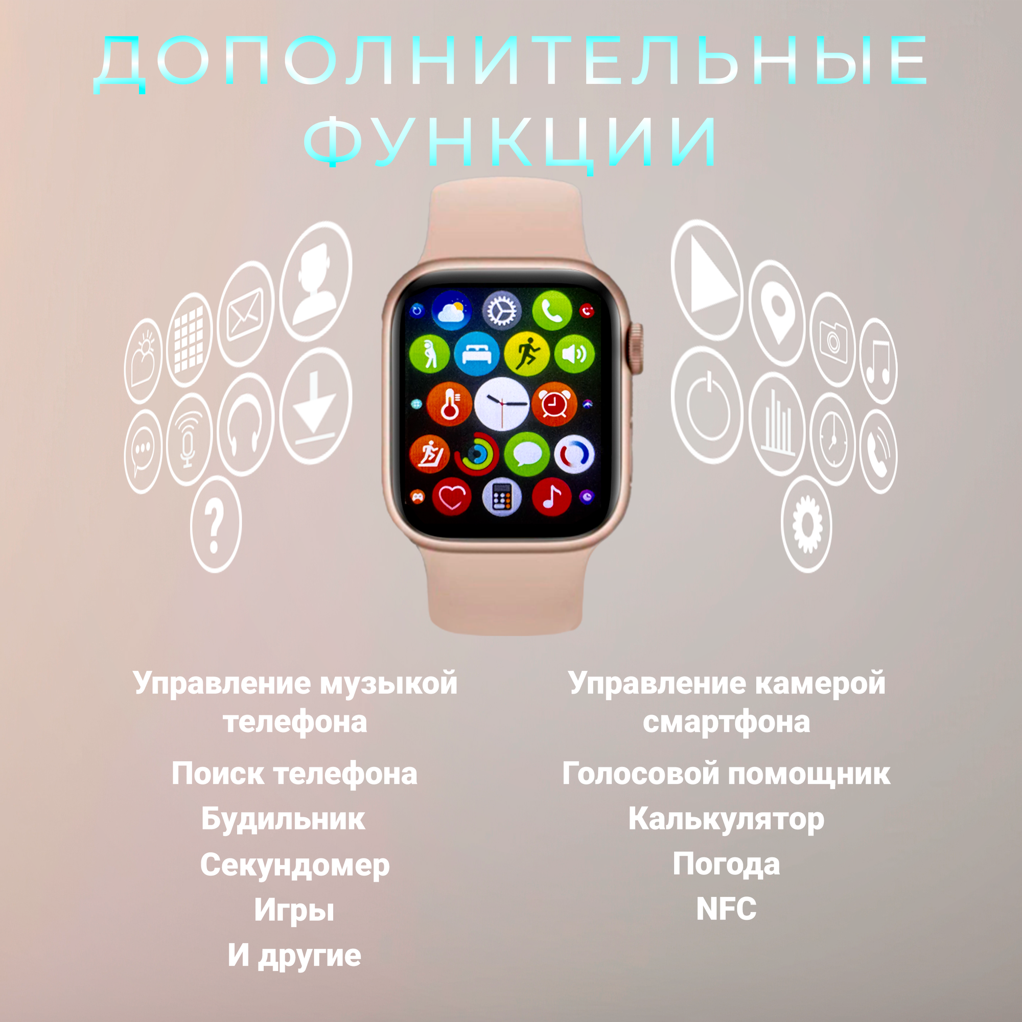 Умные смарт часы с изогнутым экраном, watch 10, X10 MIni3, 41 мм с NFC и беспроводной зарядкой, розовые
