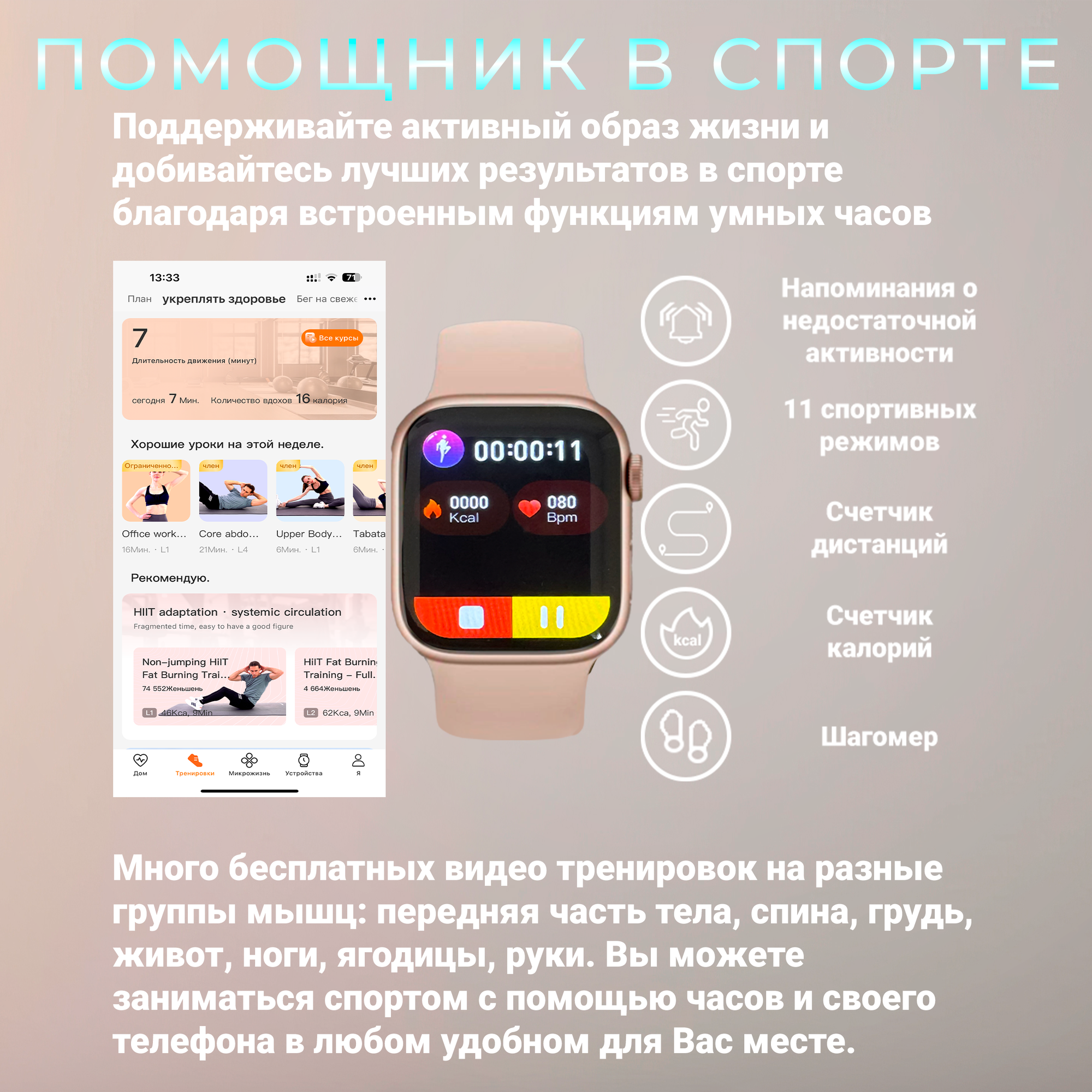 | Мониторинг | ЭКГ, калорий, пульса, сна, уровня кислорода в крови, физической активности, частоты дыхания |