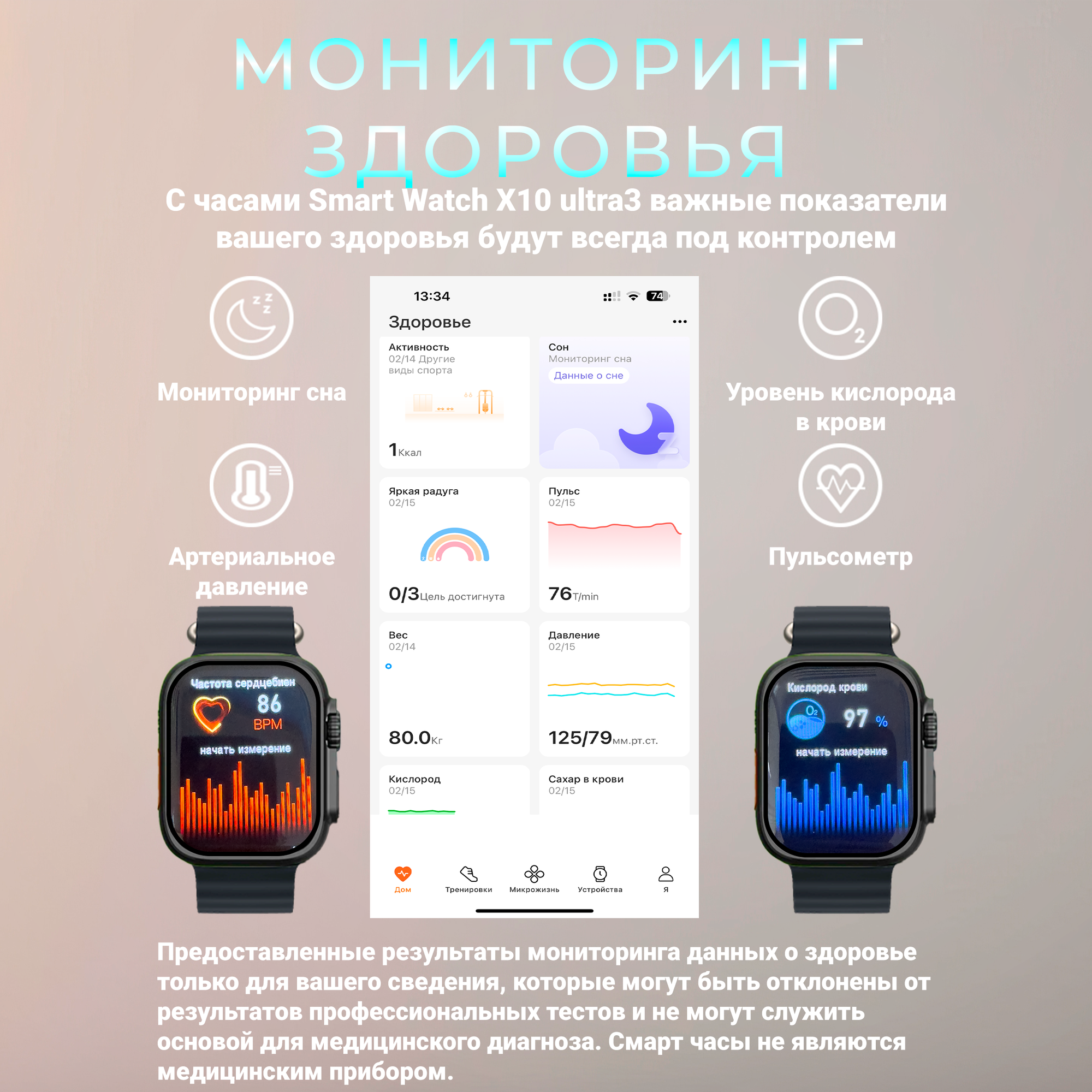 Купить Умные смарт часы с изогнутым экраном, watch 10, X10 Ultra3, 49 мм с NFC и беспроводной зарядкой, черные