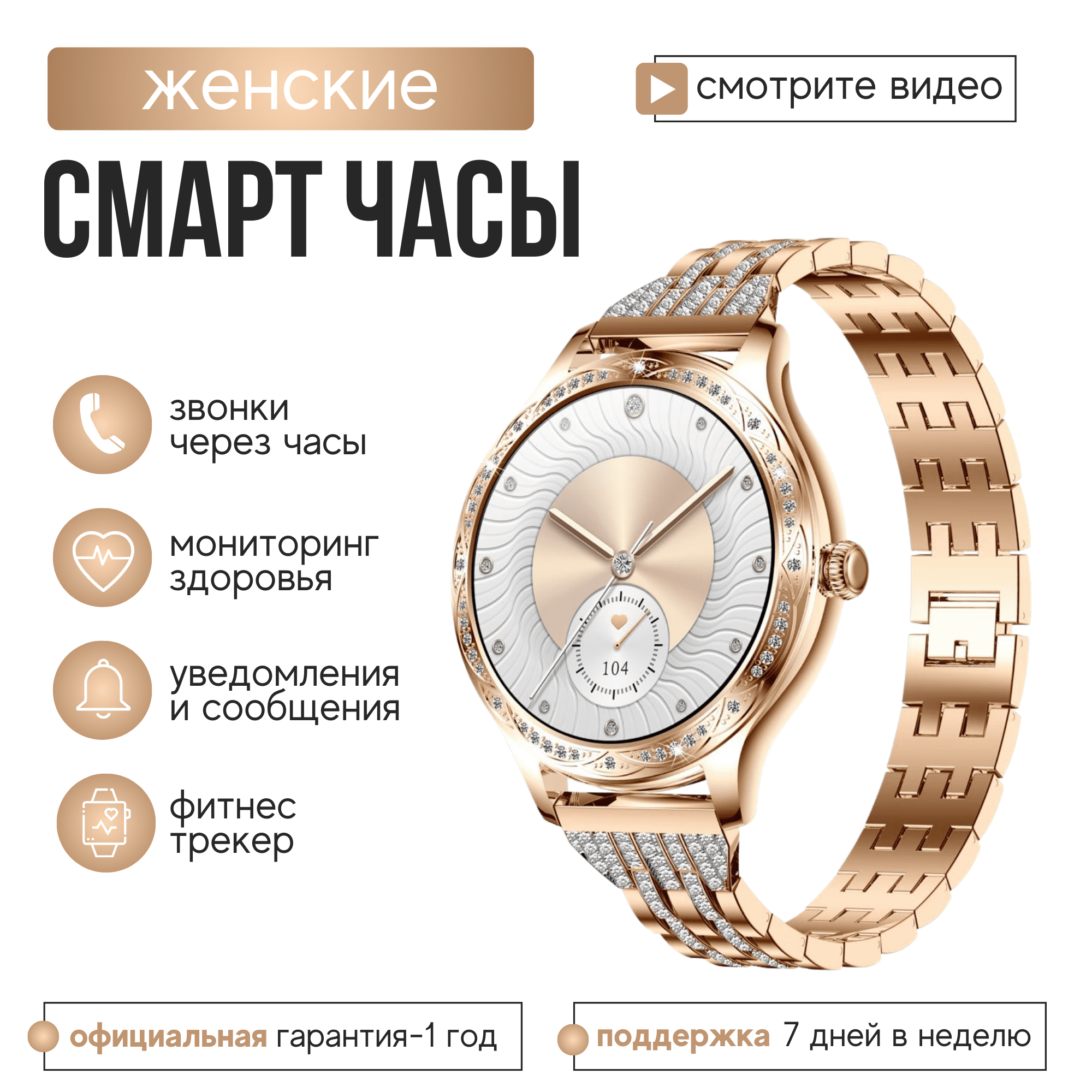 Купить Lemfo Смарт часы женские круглые AK60 с bluetooth звонком (Золотистые)
