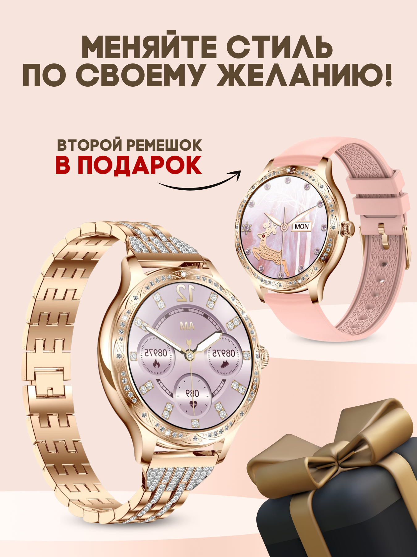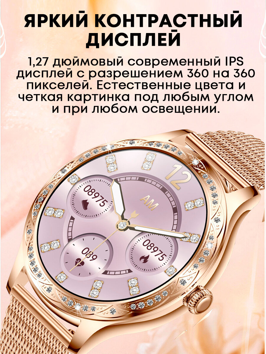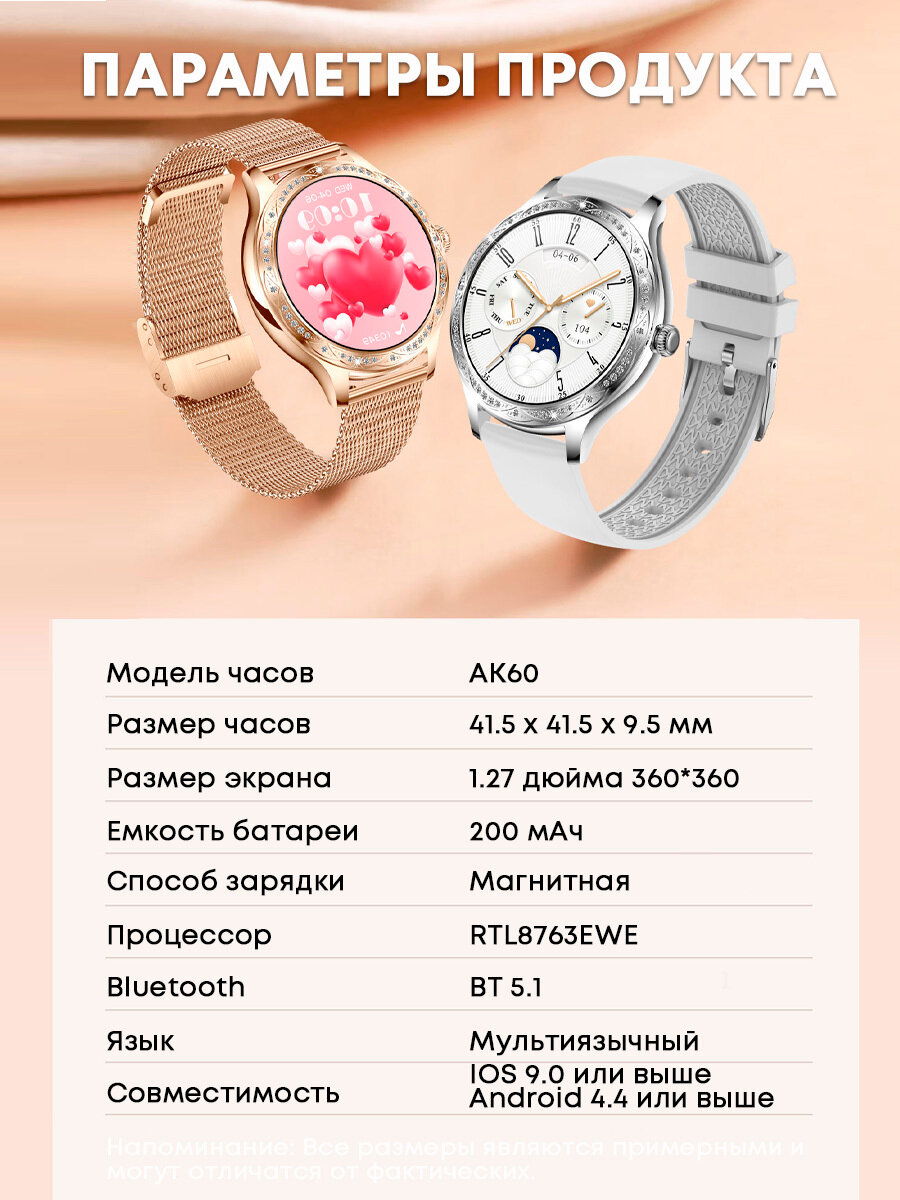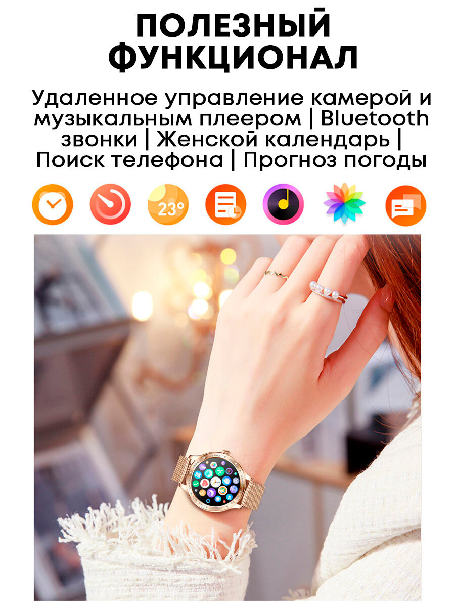 Lemfo Смарт часы женские круглые AK60 с bluetooth звонком (Золотистые) интересное:
