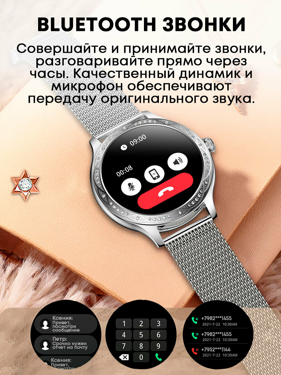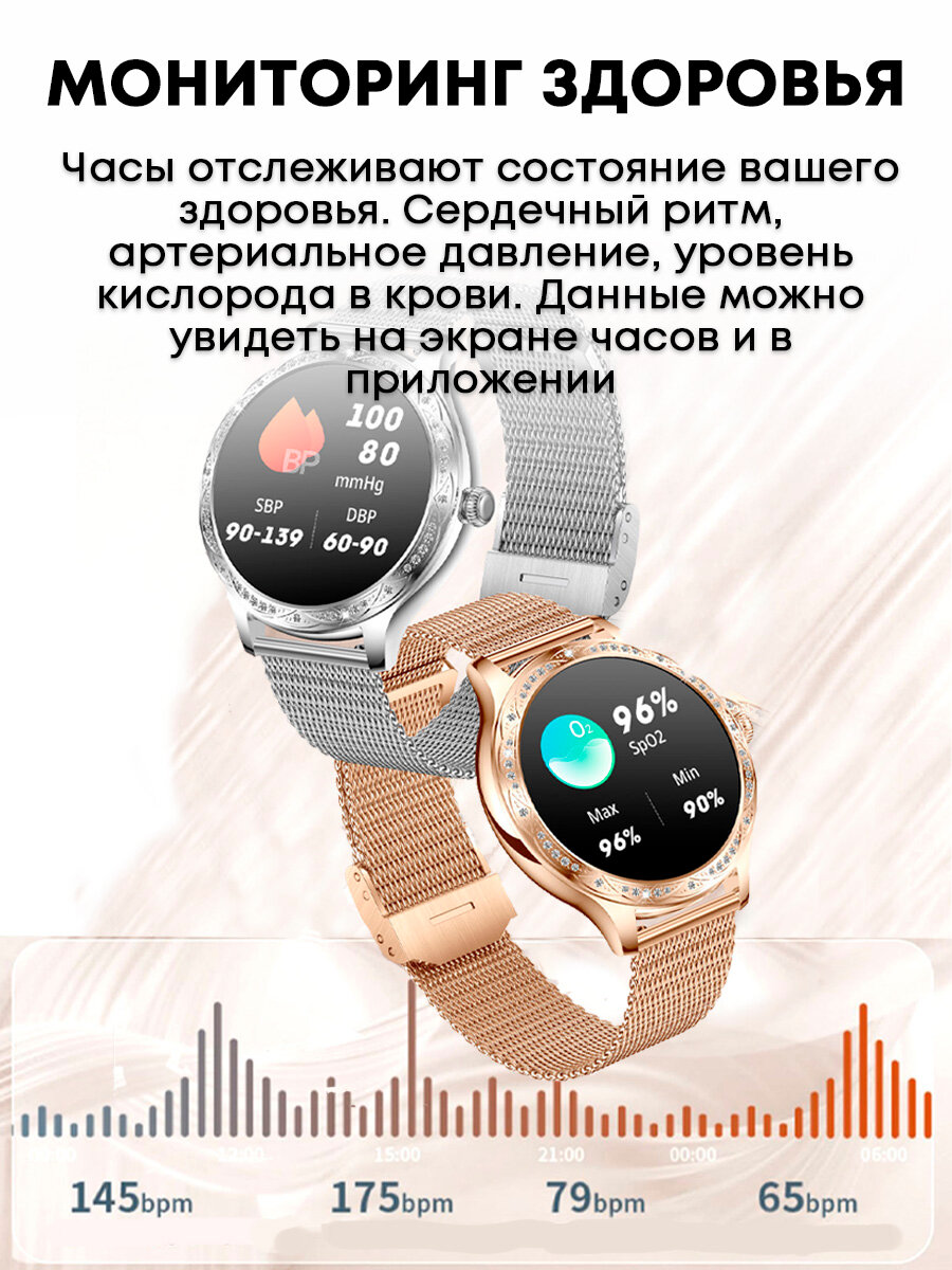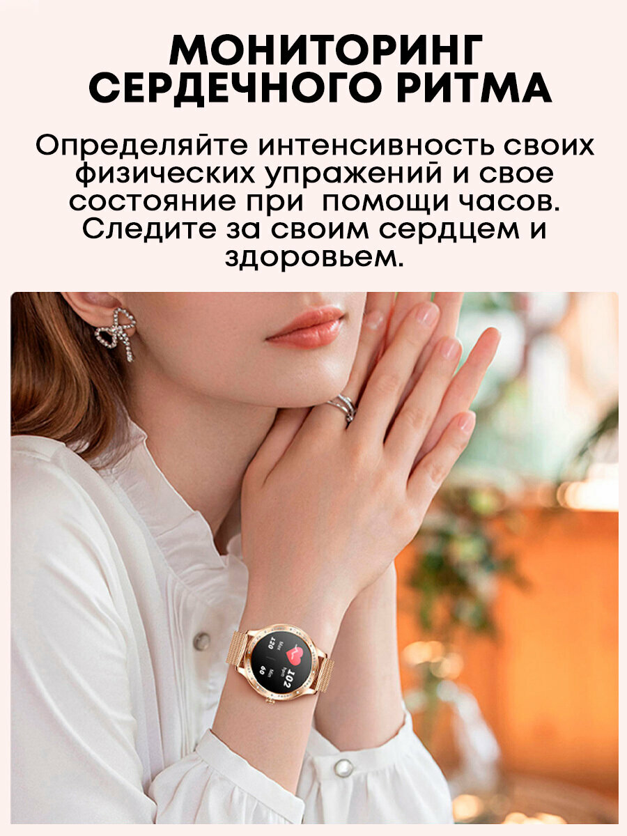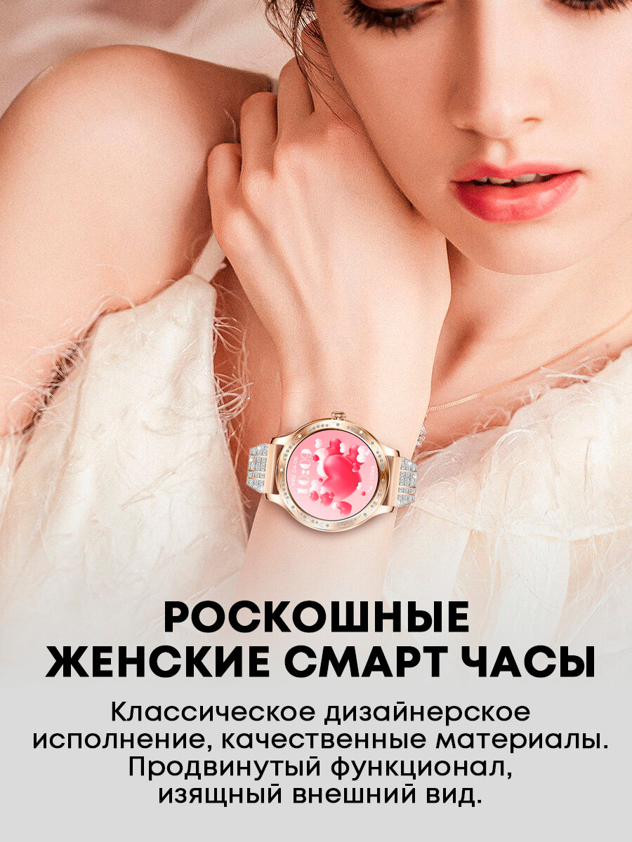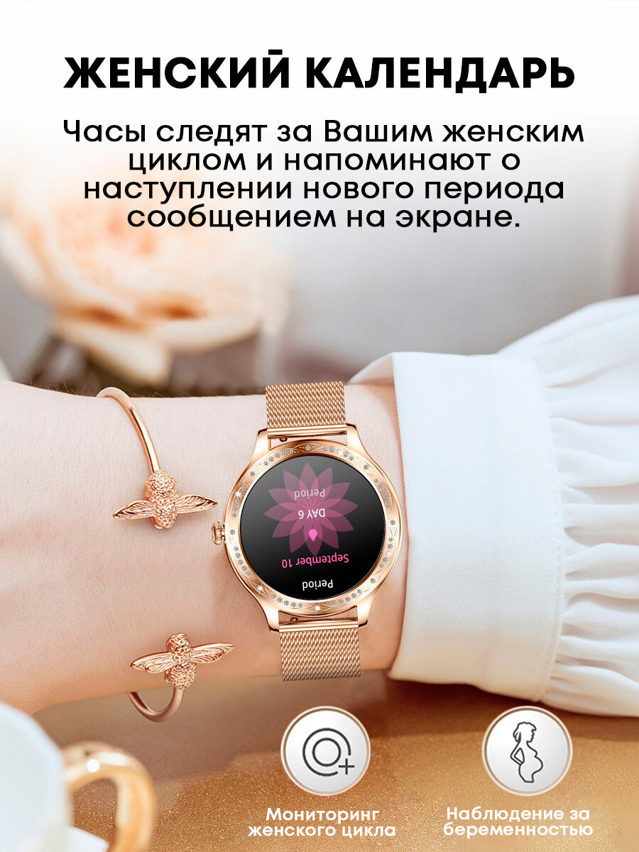 Lemfo Смарт часы женские круглые AK60 с bluetooth звонком (Золотистые) интересное: