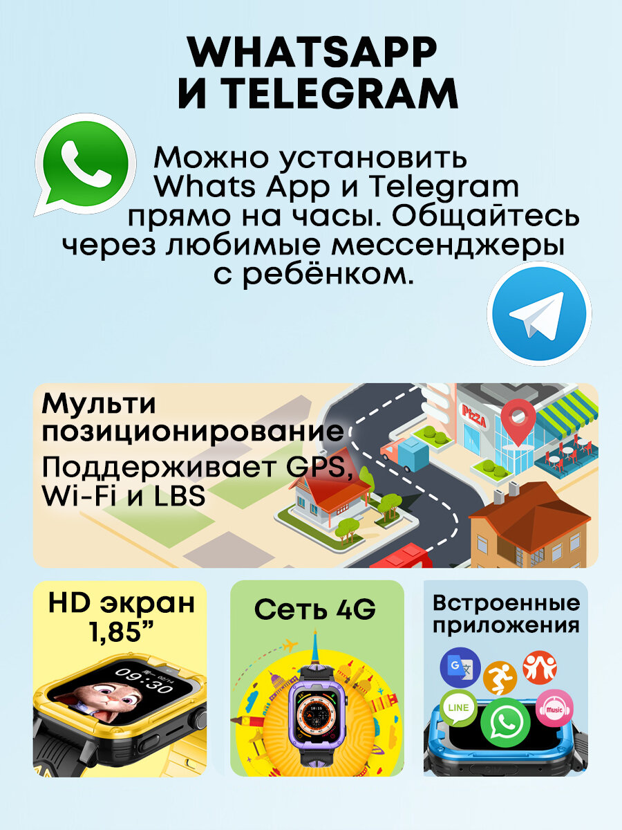 Smart Baby Watch Детские смарт часы KT32 c GPS, видеозвонком, Whats App и Telegram (Голубой)