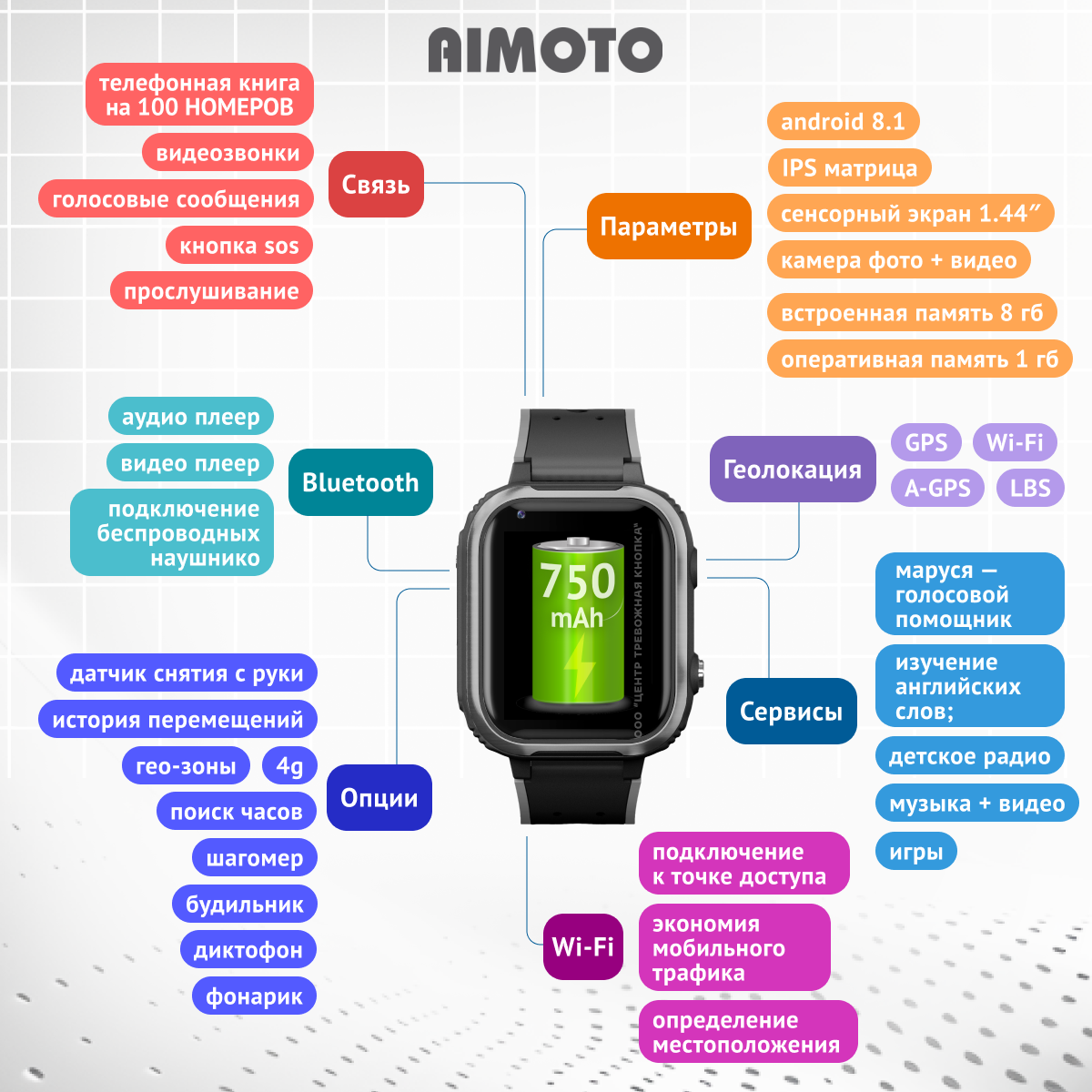 Детские умные часы Aimoto IQ 4G с сим и с голосовым помощником Маруся, черный интересное: