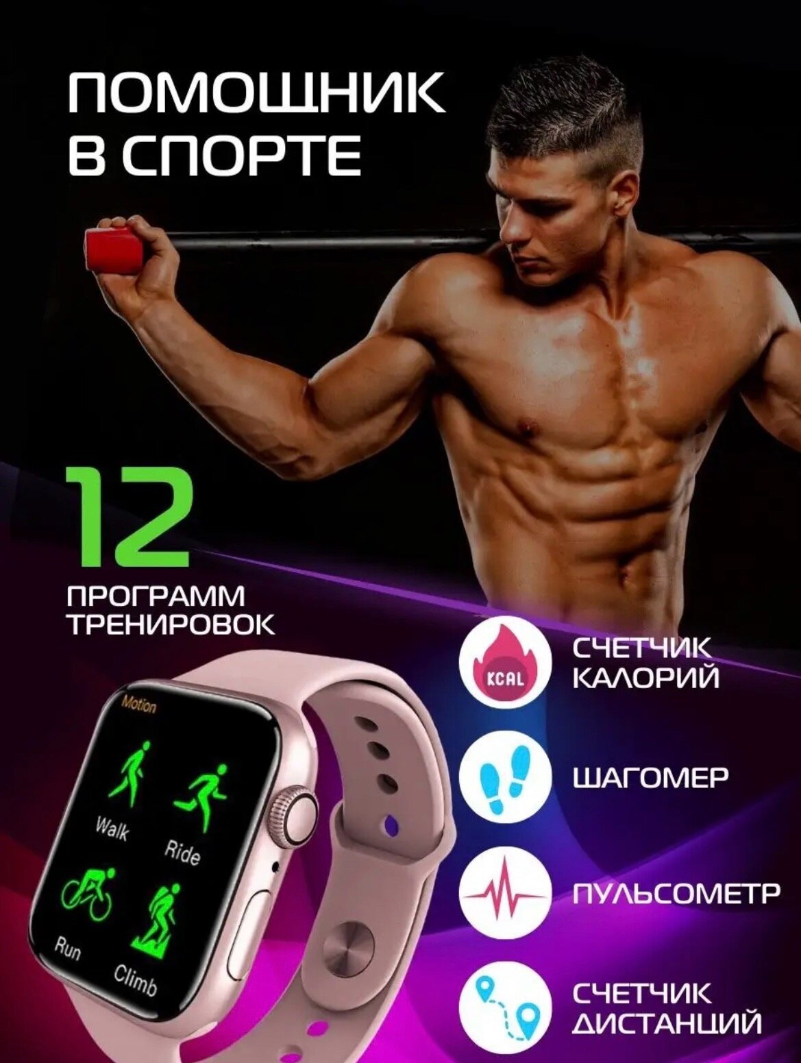 Умные смарт часы Х8 PRO Smart Watch 45mm Android iOS розовые интересное: