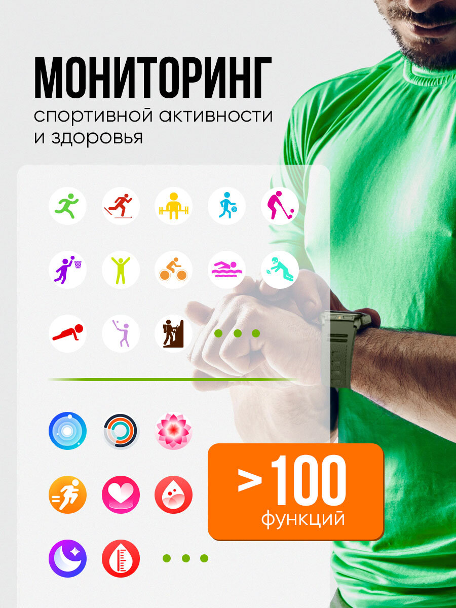 | Мониторинг | ЭКГ, пульса, сна, уровня кислорода в крови, физической активности |