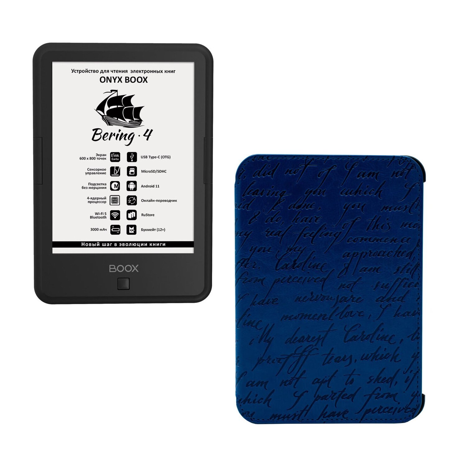 Электронная книга ONYX BOOX Bering 4, темно-серый с синим чехлом интересное: