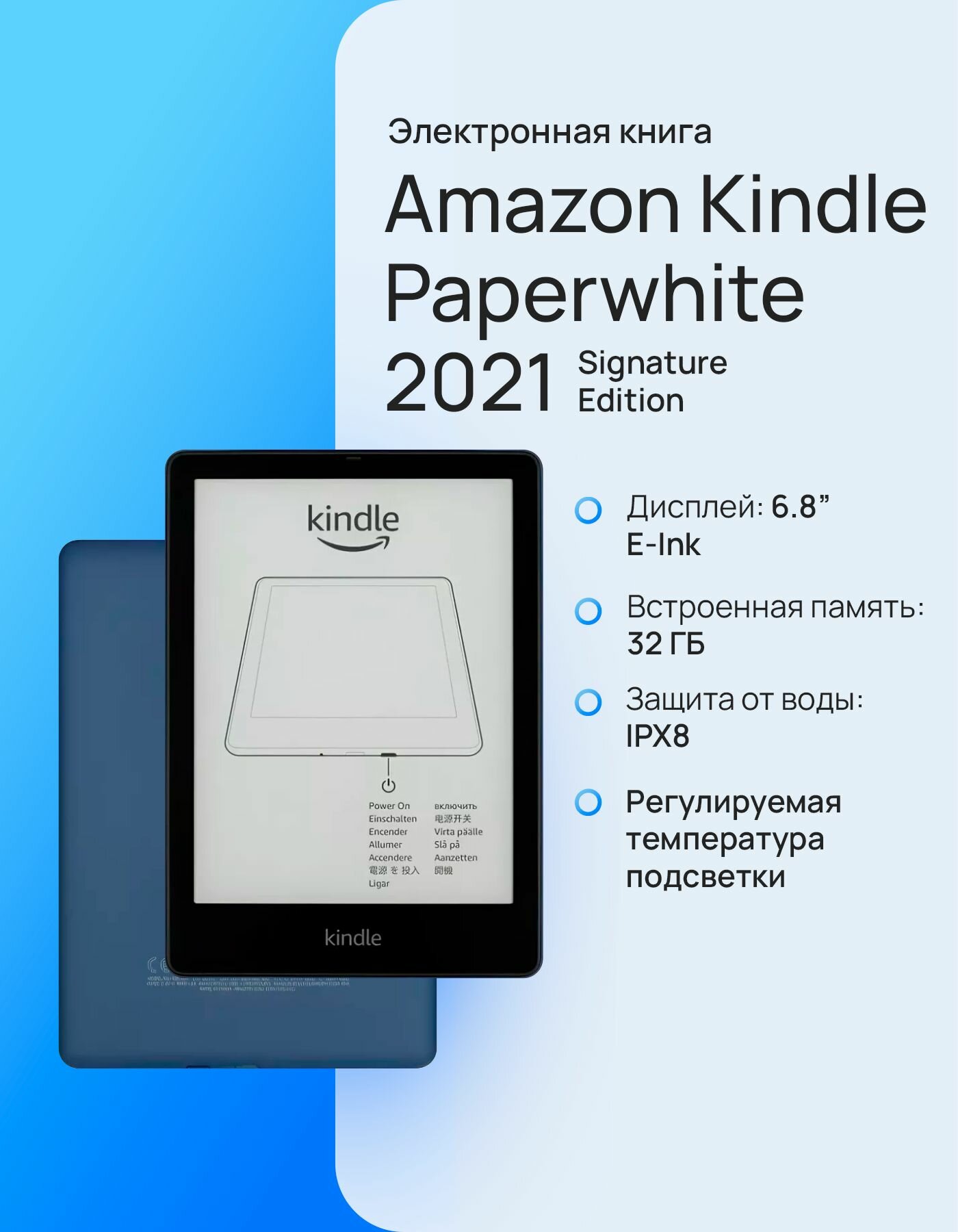 Электронная книга Amazon Kindle PaperWhite 2021 32Gb Blue Ad-Supported