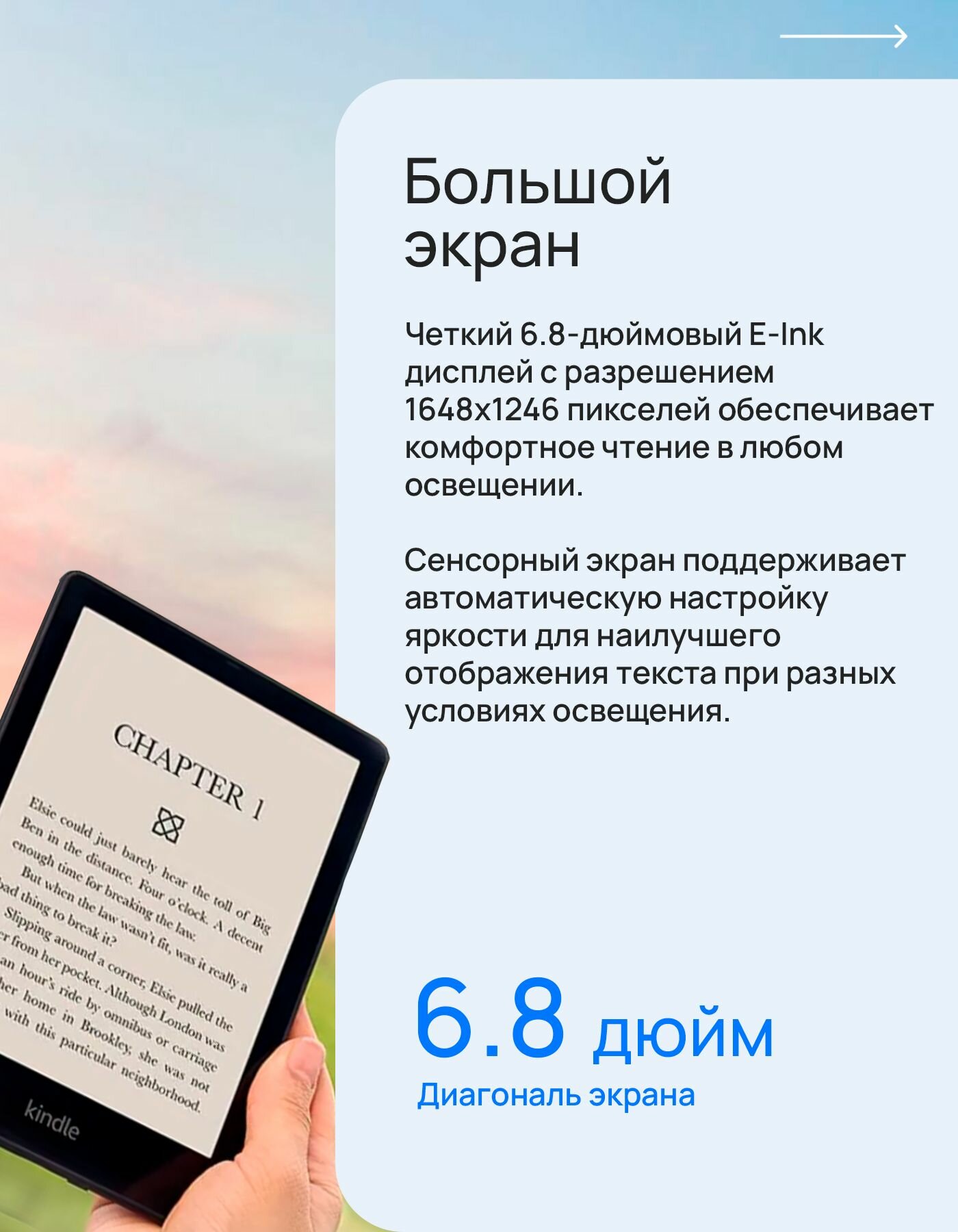 | Тип дисплея | E-Ink |