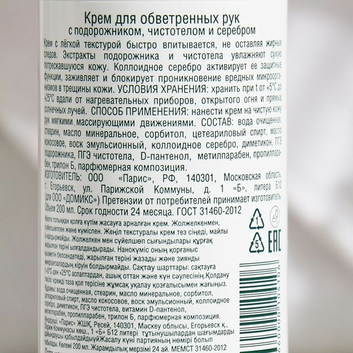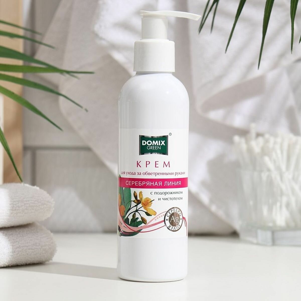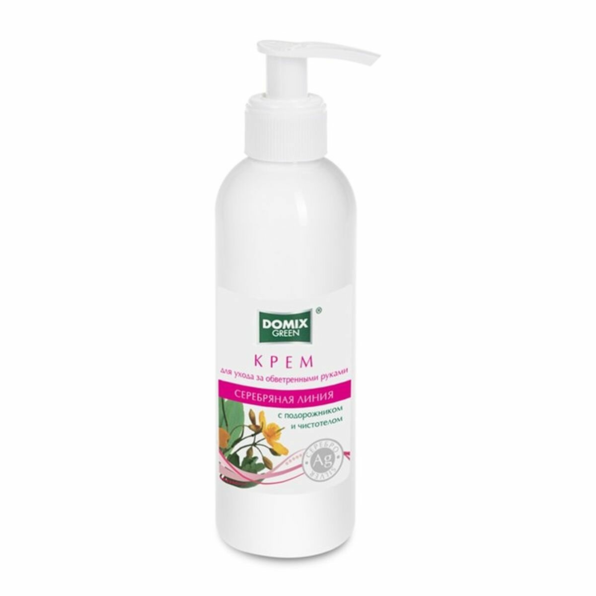 Domix Green Крем для ухода за обветренными руками Серебряная линия с подорожником и чистотелом и наносеребром, 200 мл