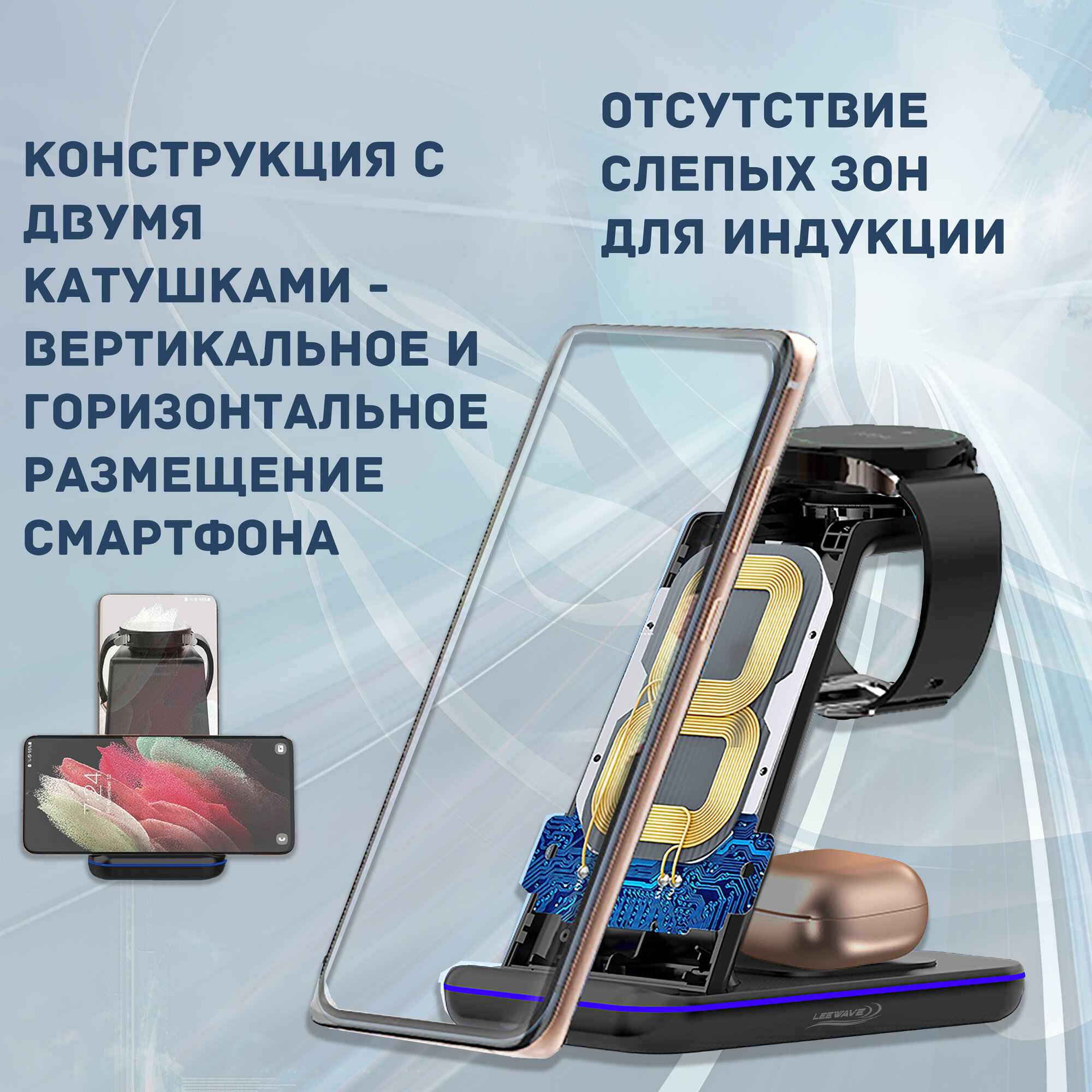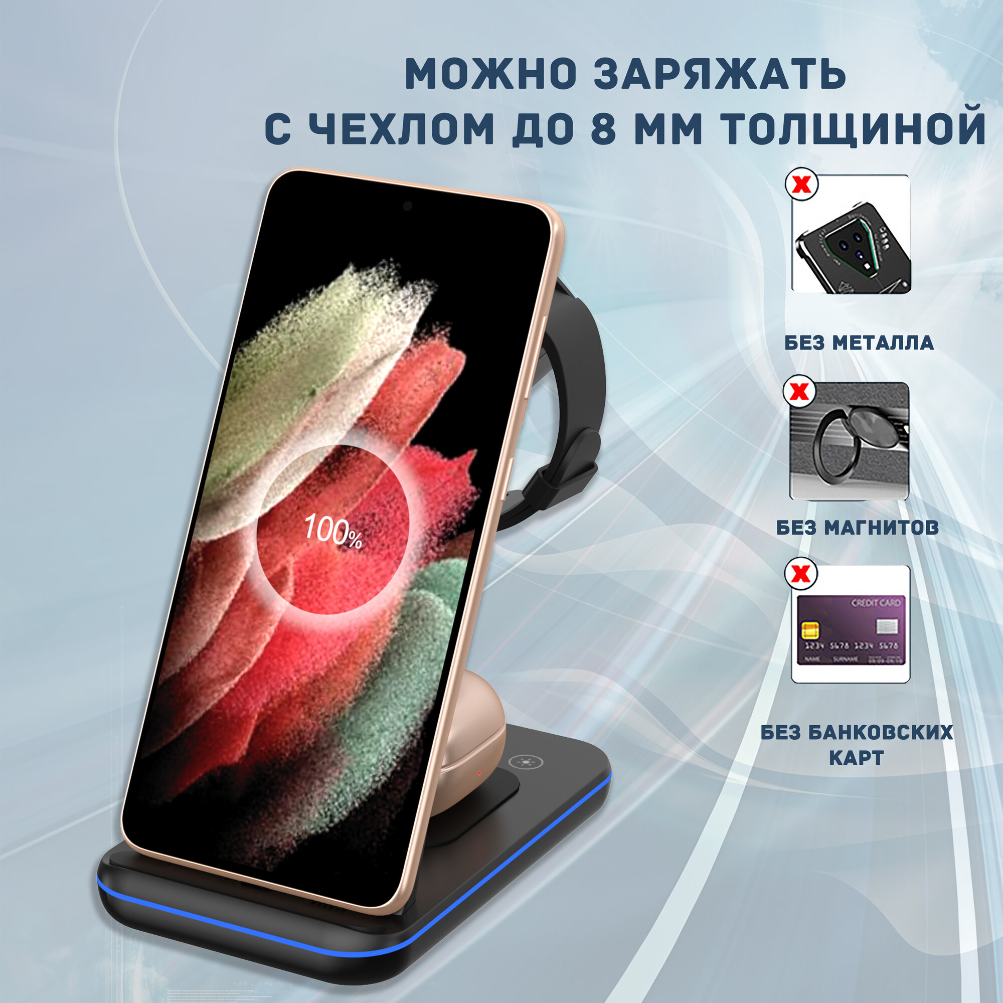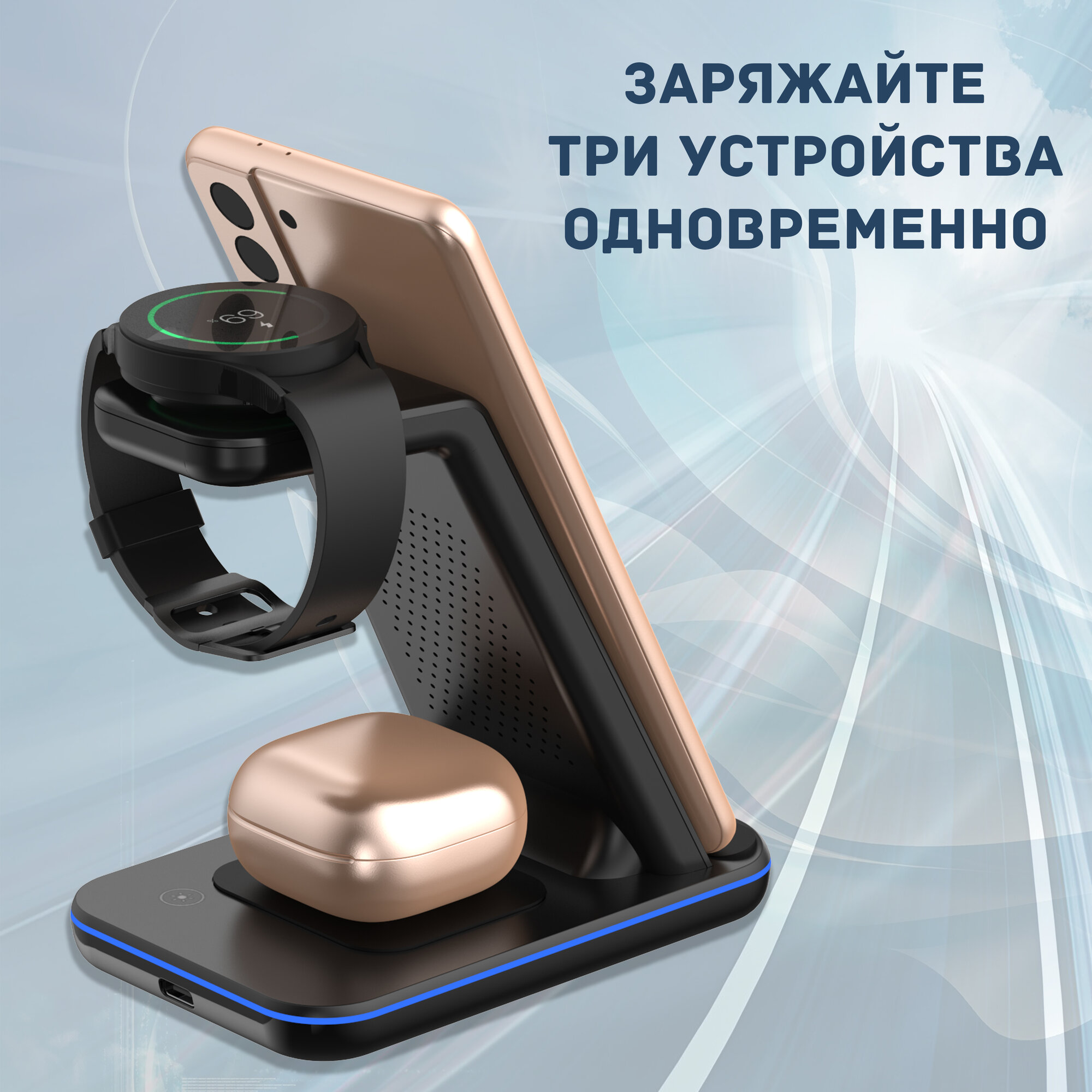 Беспроводная зарядка 3 в 1 для SAMSUNG, док станция QI (LANDMARK model) Черная интересное: