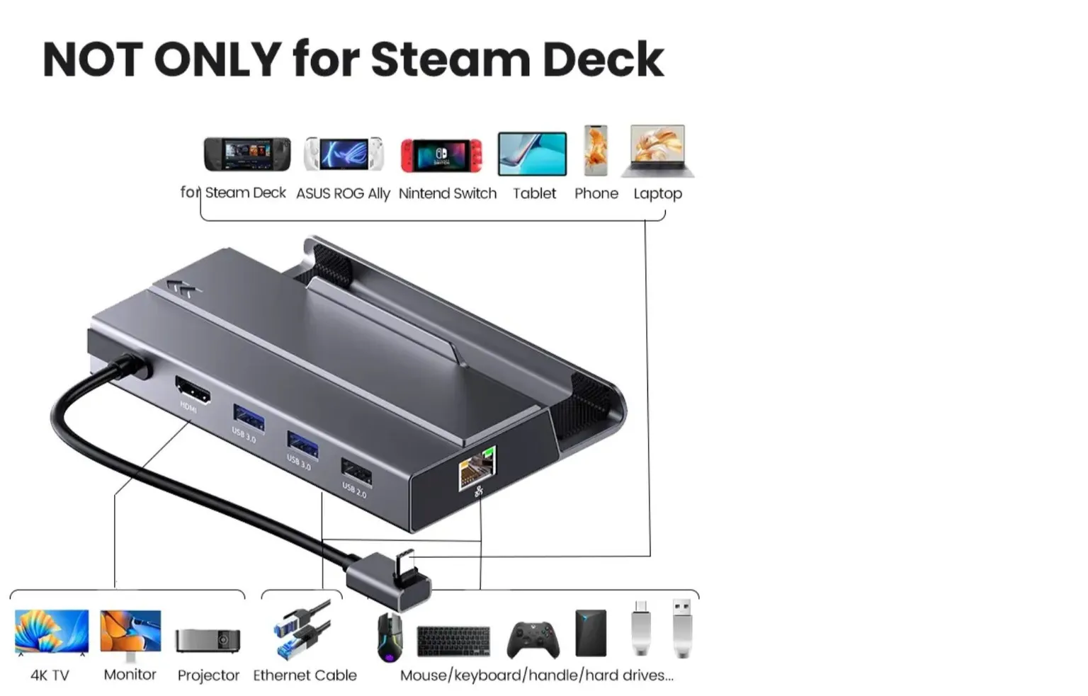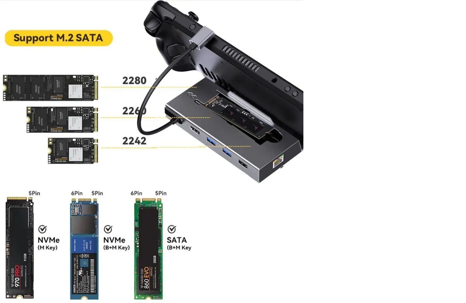 Док-станция 4К 60 Гц с M.2 слотом NVMe SSD для Steam deck/ ASUS Rog ally/ Док станция 7 в 1 для игровых приставок интересное: