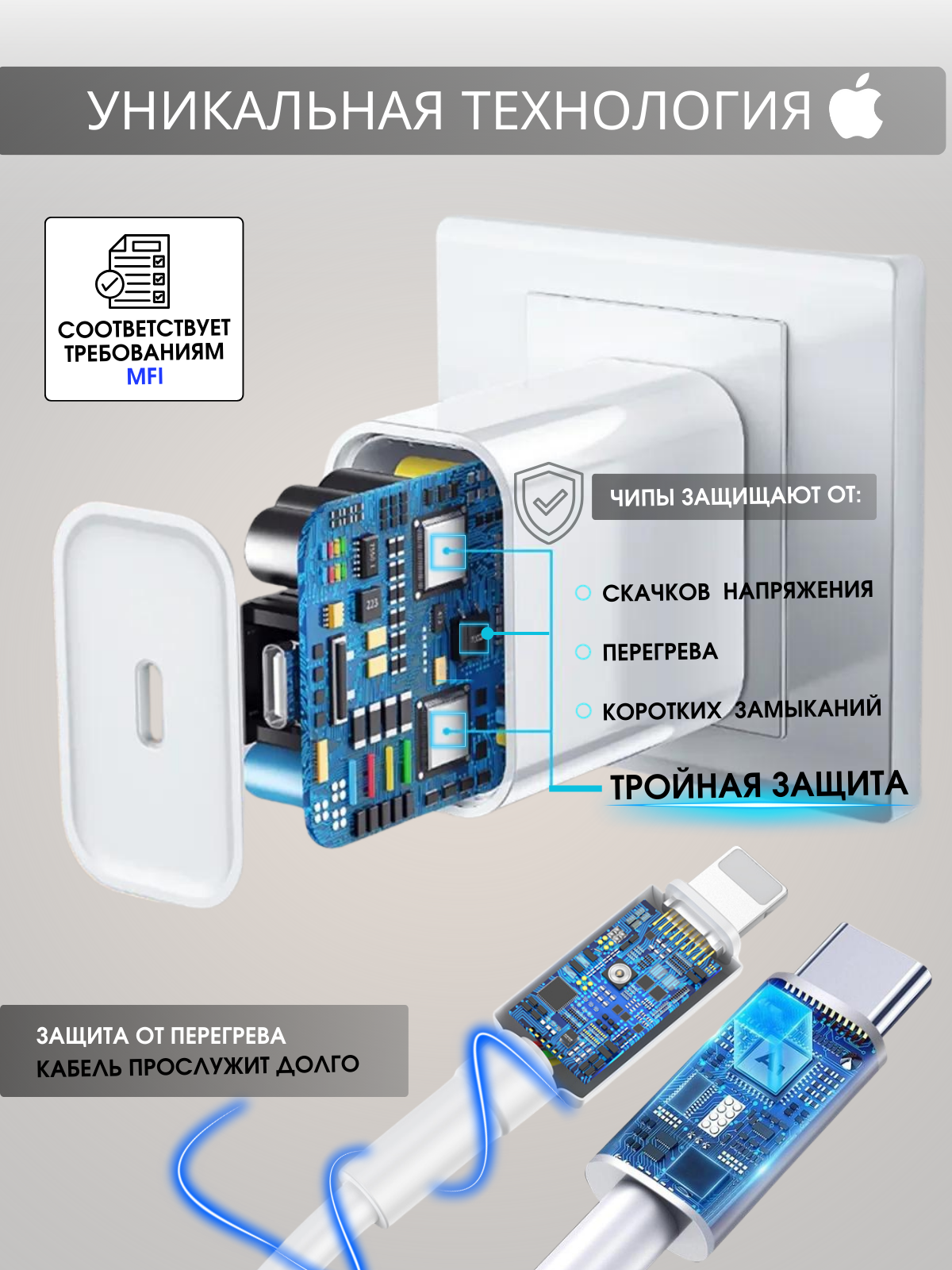 | Разъем кабеля | USB Type-C / USB Type-C - Lightning |