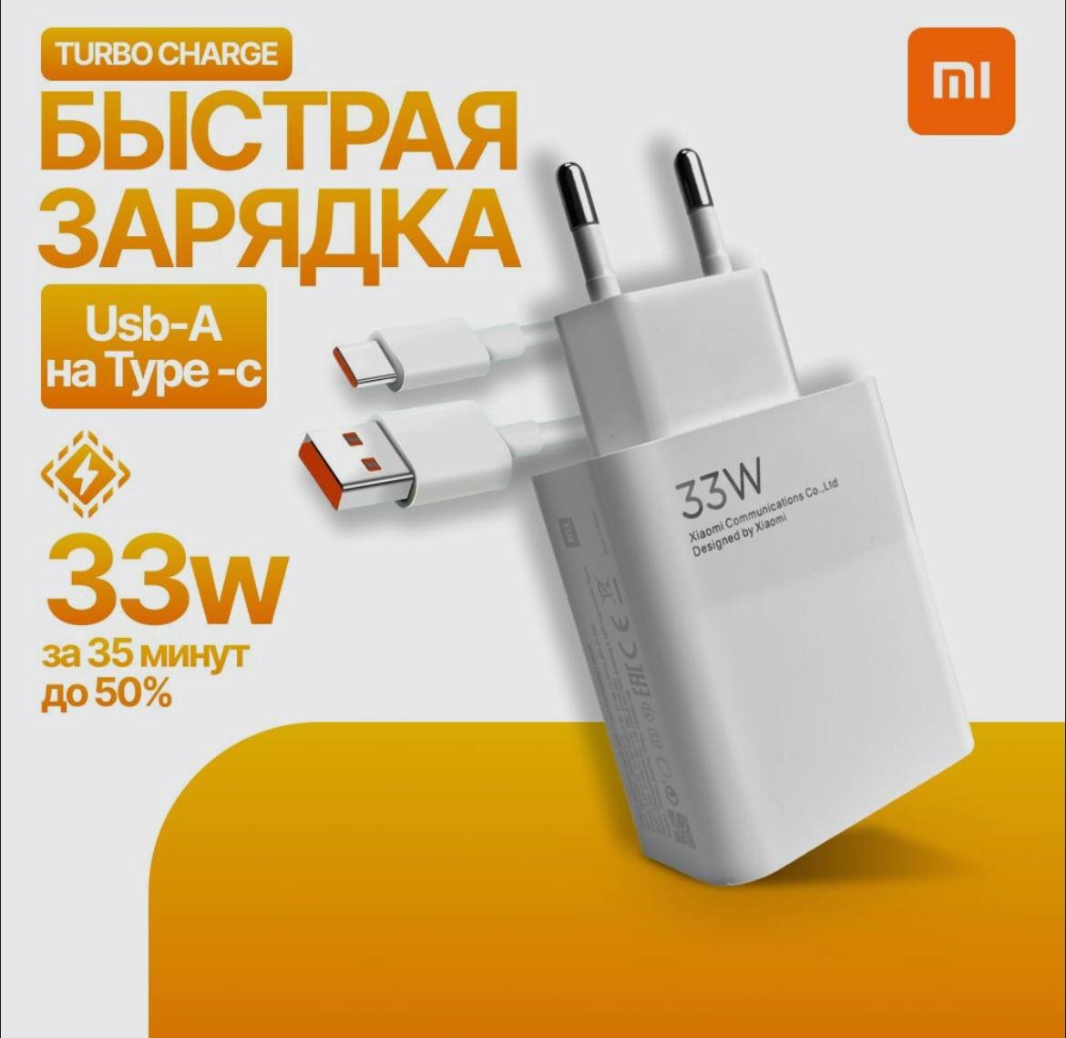 Быстрая зарядка для телефона xiaomi 33w type-c