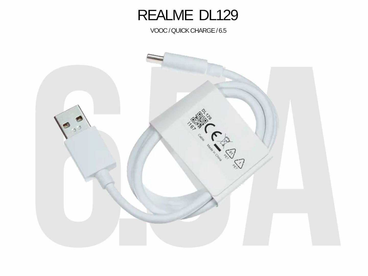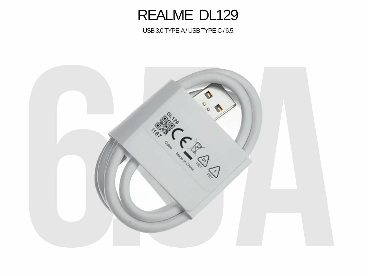 Кабель USB Type-C 6.5A Realme (SuperDart Charge), белый. интересное:
