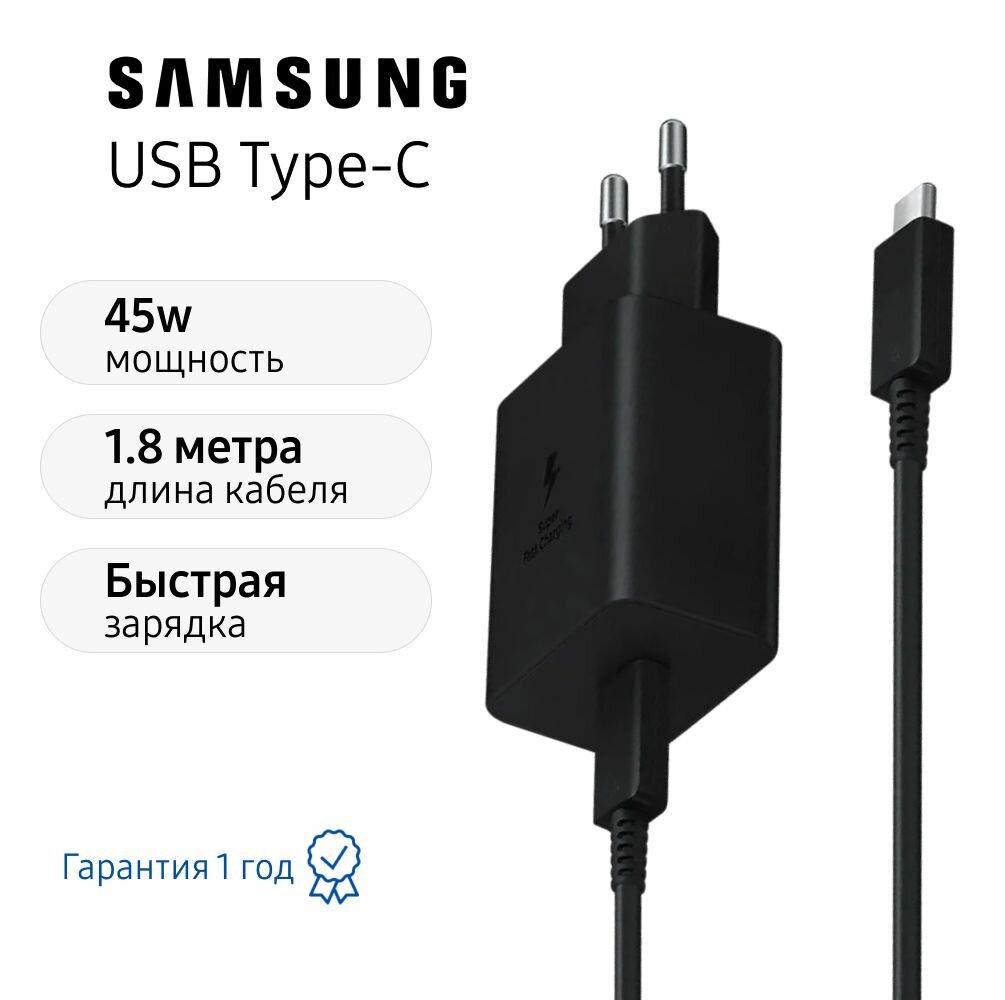 Зарядное устройство Samsung EP-T4510 Оригинал, кабель в комплекте, 45Вт, с быстрой зарядкой, черное