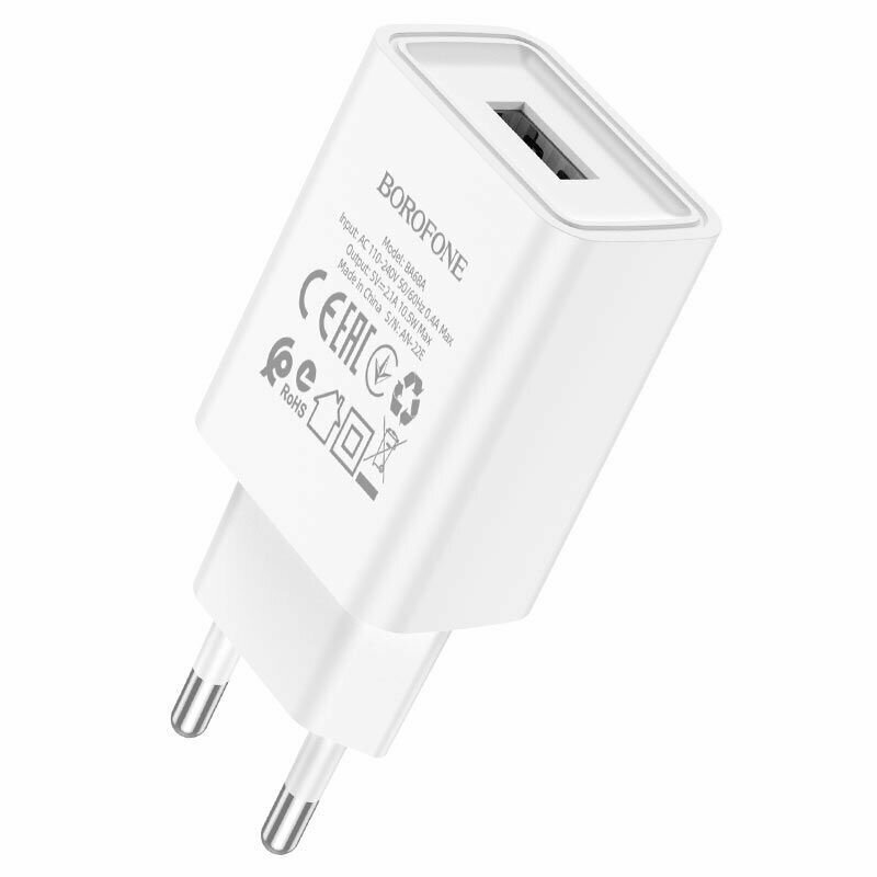 Сетевой адаптер питания Borofone BA68A Glacier White зарядка 2.1А 1 USB-порт + кабель microUSB, белый