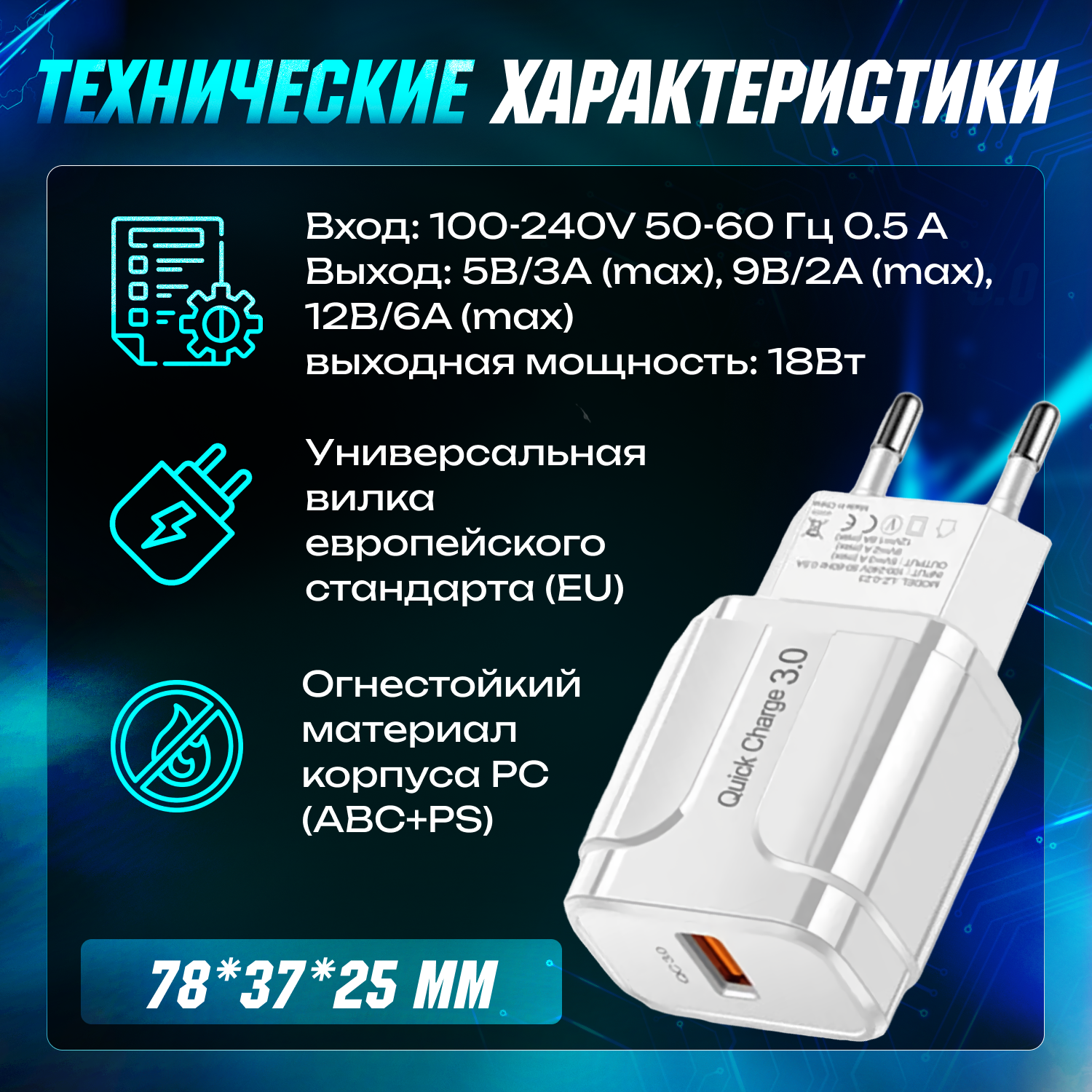 Быстрая зарядка для телефона QC3.0, блок питания 18W, сетевое зарядное устройство, скоростной адаптер, черный