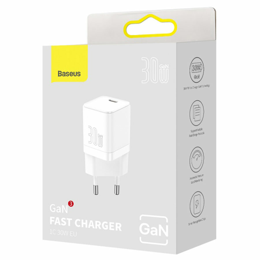 Baseus СЗУ Baseus GaN3 Fast Charger 1C 30W EU PD 3А/1USB-C White белый CCGN010102 интересное: