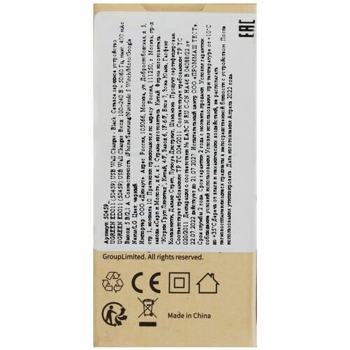 Сетевое зарядное устройство Ugreen ED011 (50459) USB-A Wall Charger 1 порт, черный интересное: