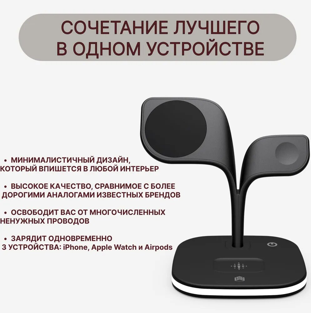 | Конструкция беспроводного устройства | для 2 телефонов / для планшета / зона для Apple Watch / зона для беспроводных наушников / зона для умных часов |