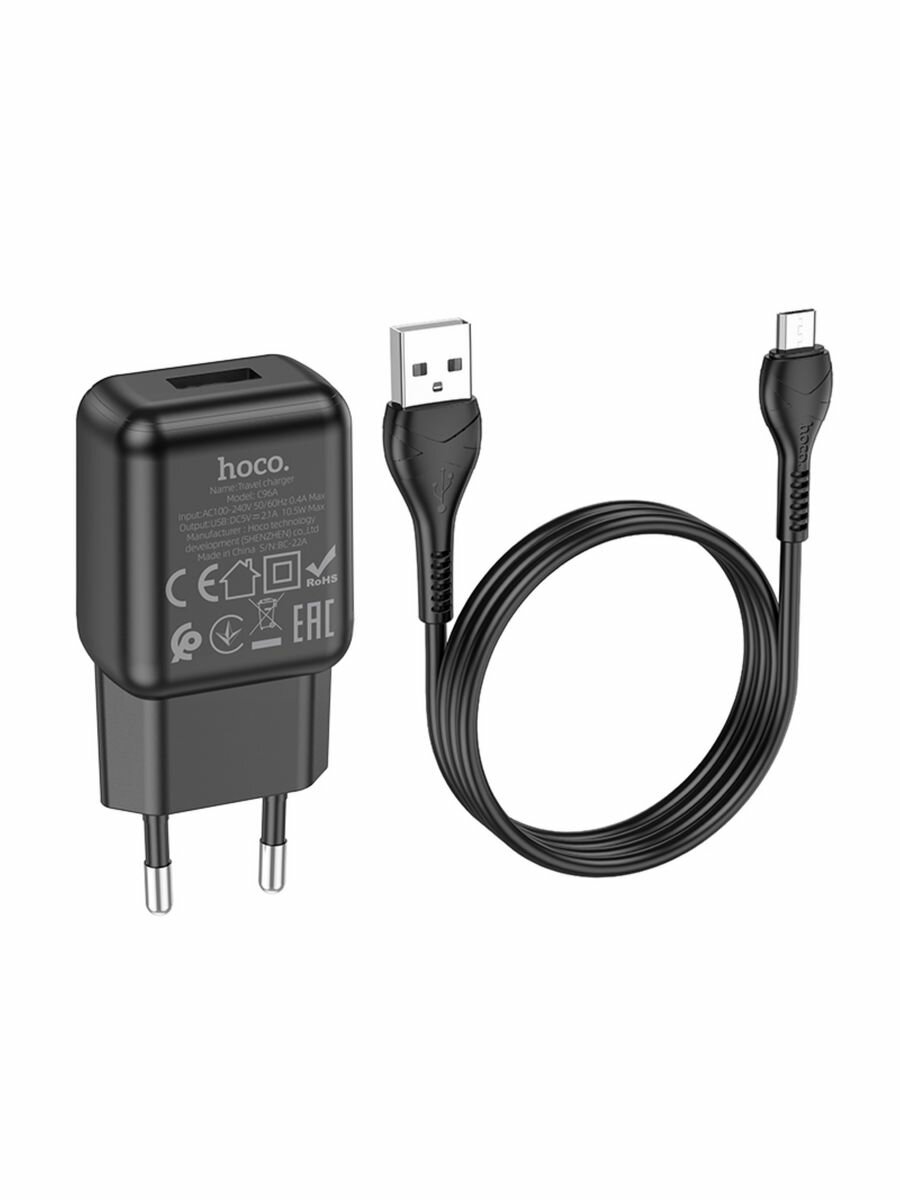 Купить Сетевое зарядное устройство Hoco C96A, 1 USB, 2.1 А, кабель Type-C-USB, 1 м, чёрное