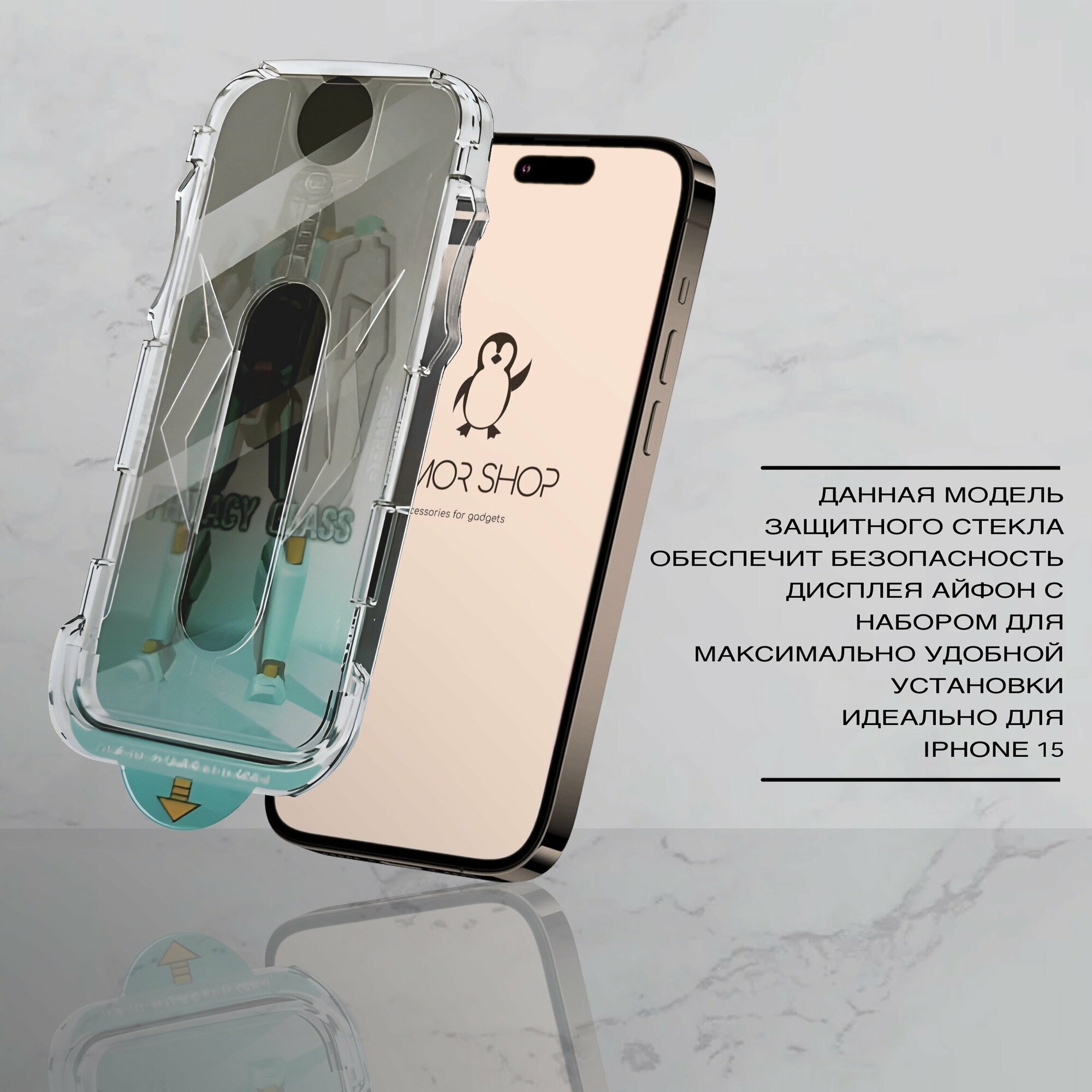 Защитное стекло с "автоматической" установкой для iPhone 15, антишпион интересное: