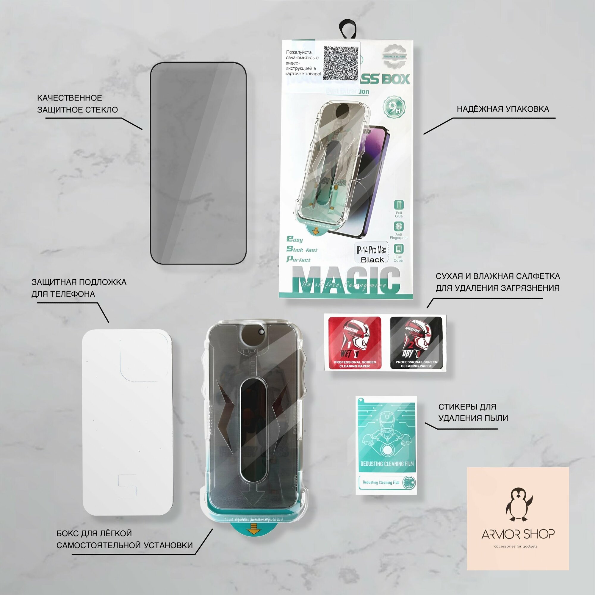 Купить Защитное стекло с "автоматической" установкой для iPhone 15, антишпион