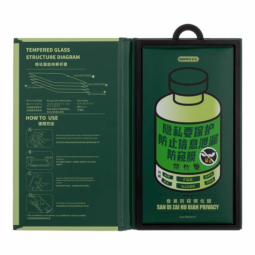 Купить Защитное стекло антишпион REMAX GL-27 для iPhone 15 Pro Max 6,7", 3D, 9H, 0.3mm