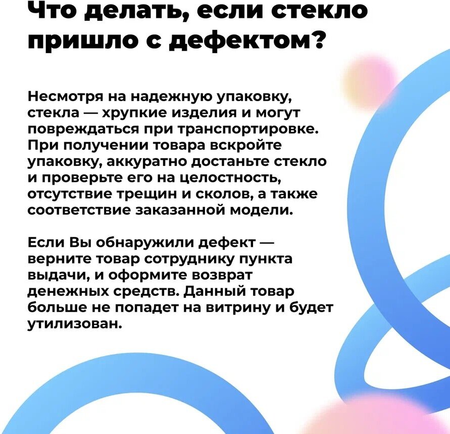 | Подробная комплектация | В комплект входит: защитное стекло - 1 шт., стикеры для удаления пыли - 1 шт.; влажная салфетка - 1 шт.; сухая салфетка - 1 шт. |