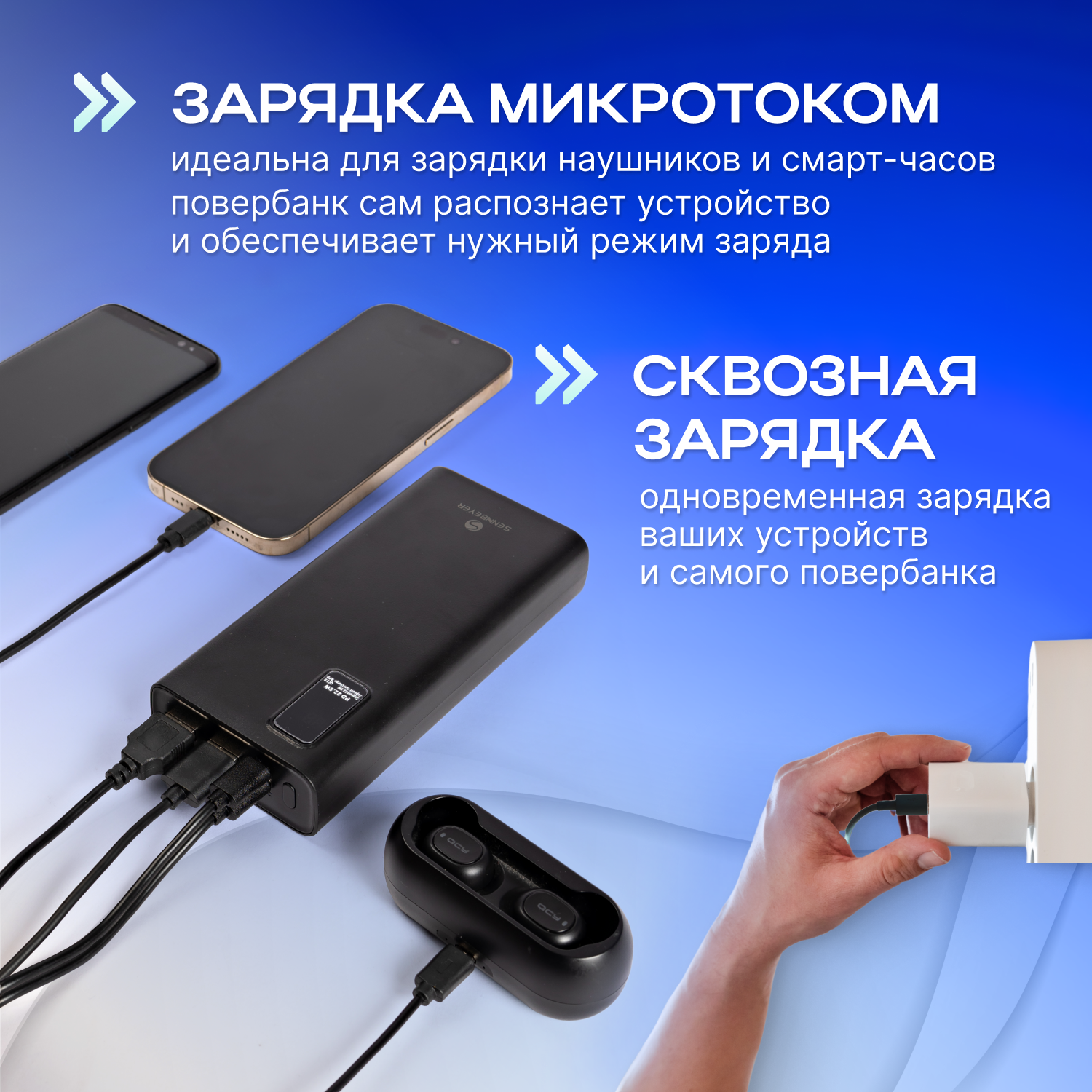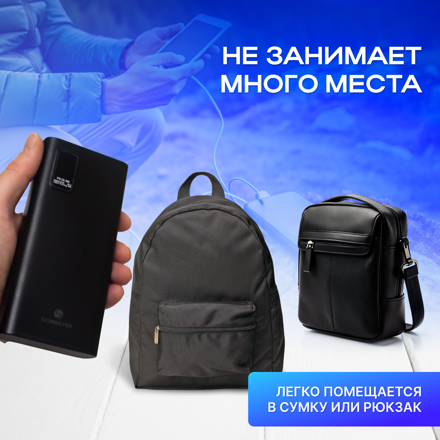 SENNBEYER power bank 30000 мАч, солнечная батарея, с кабелем и экраном.