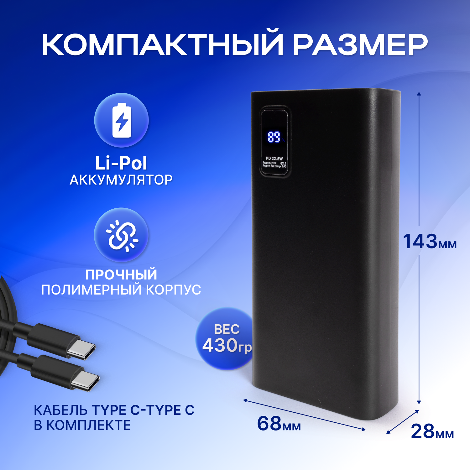 Повербанк (power bank) 20000mah с быстрой зарядкой, внешний аккумулятор для телефона iPhone, Xiaomi, Samsung, черный интересное: