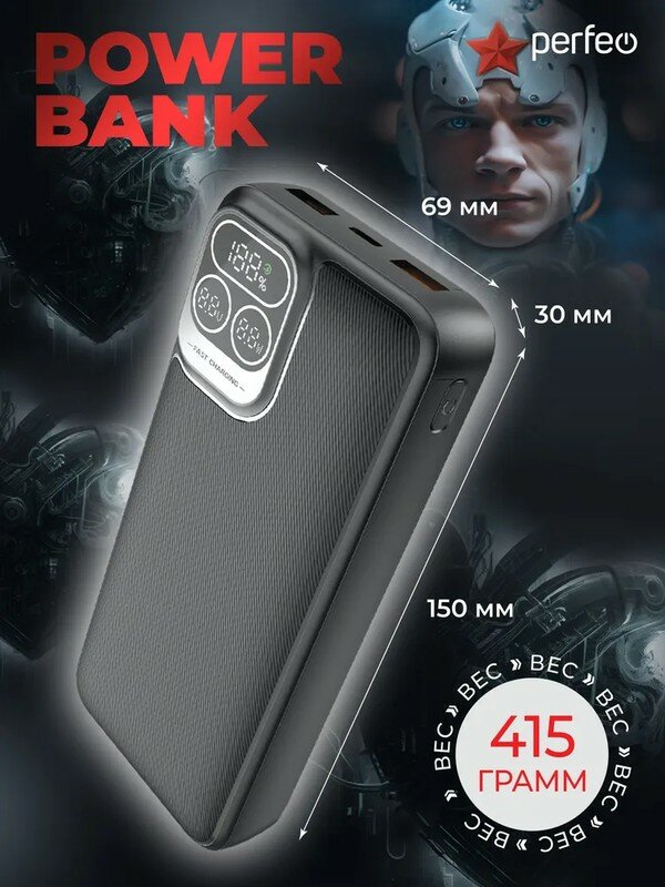 Perfeo Powerbank Atomic Age 20000 mAh/LED дисплей/PD + QC 3.0/Type-C/2 USB/Выход: 5A, max 22.5WBlack (PF_E1476) интересное: