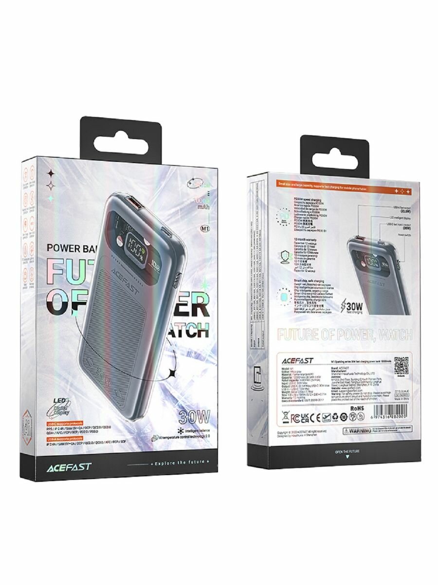 Купить Универсальный Доп. Аккумулятор 10000mAh, M1, ACEFAST, выход: 1 PD (30W) 1 USB (22.5W), серый
