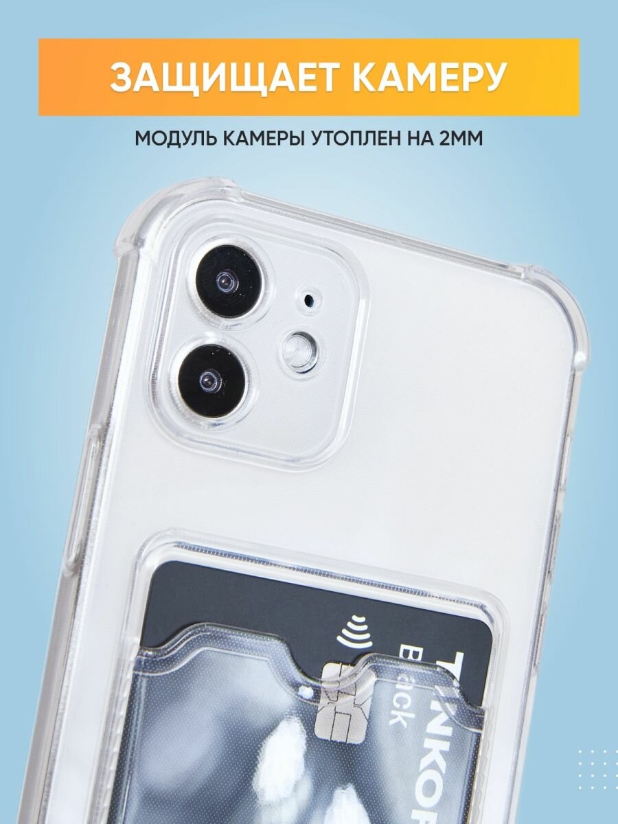 Чехол на Айфон 11 про ( iPhone 11 Pro чехол ) прозрачный силиконовый с карманом картохдером для карт