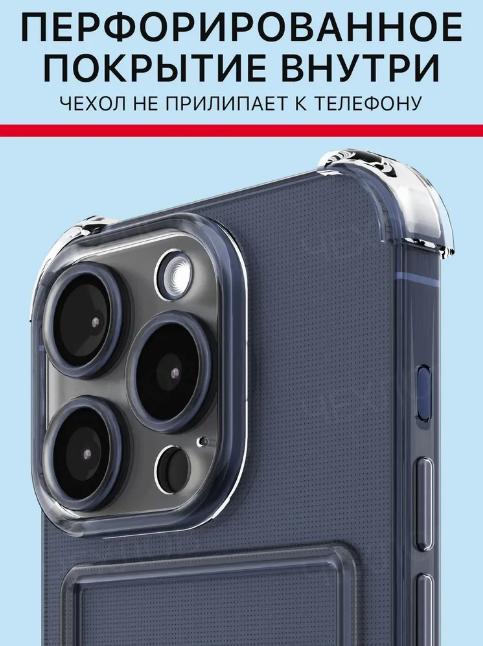 Чехол на Айфон 15 Про Макс ( iPhone 15 Pro Max чехол ) прозрачный силиконовый с карманом картохдером для карт