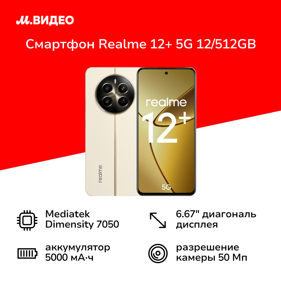 СохранитьСмартфон realme 12+ 5G 12/512GB Beige Sand интересное: