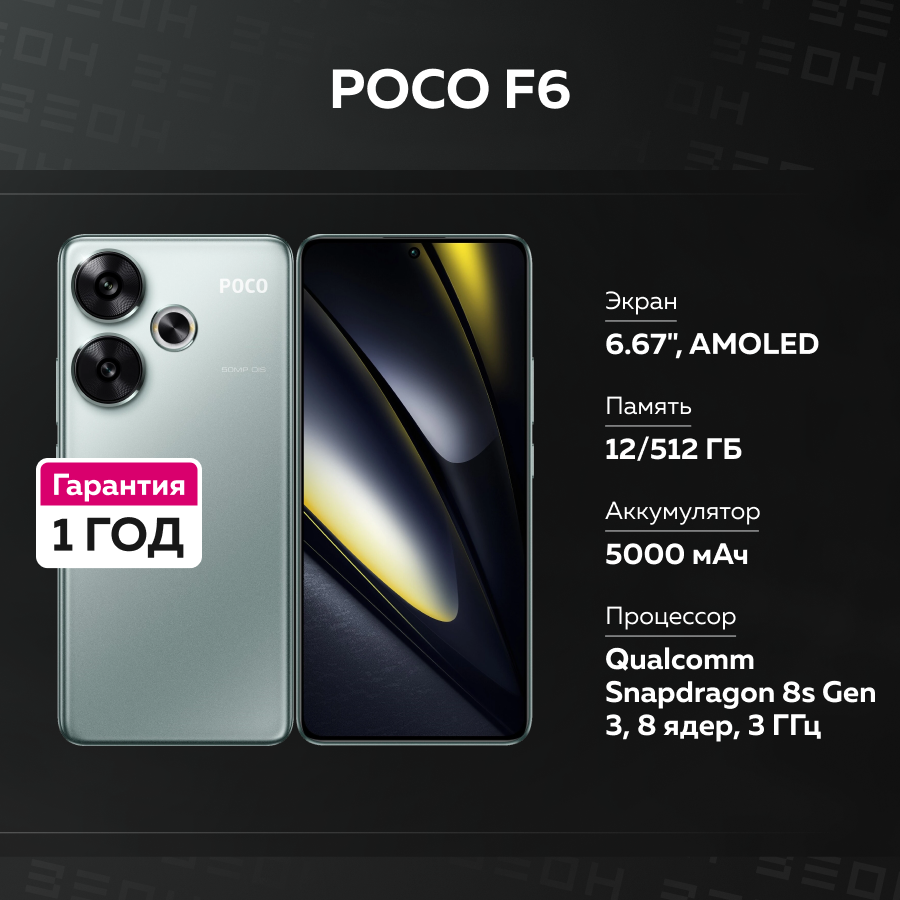 Купить Смартфон Xiaomi Poco F6 12/512 ГБ Global, Dual nano SIM, зеленый