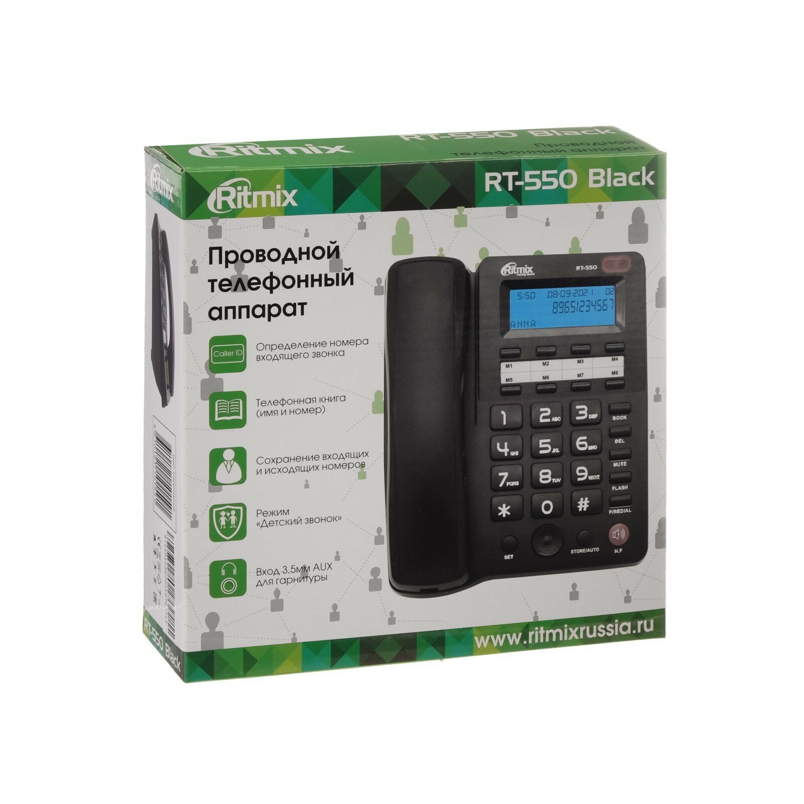 Проводной телефон Ritmix RT-550, дисплей, телефонная книга, однокнопочный набор, AUX, черный интересное: