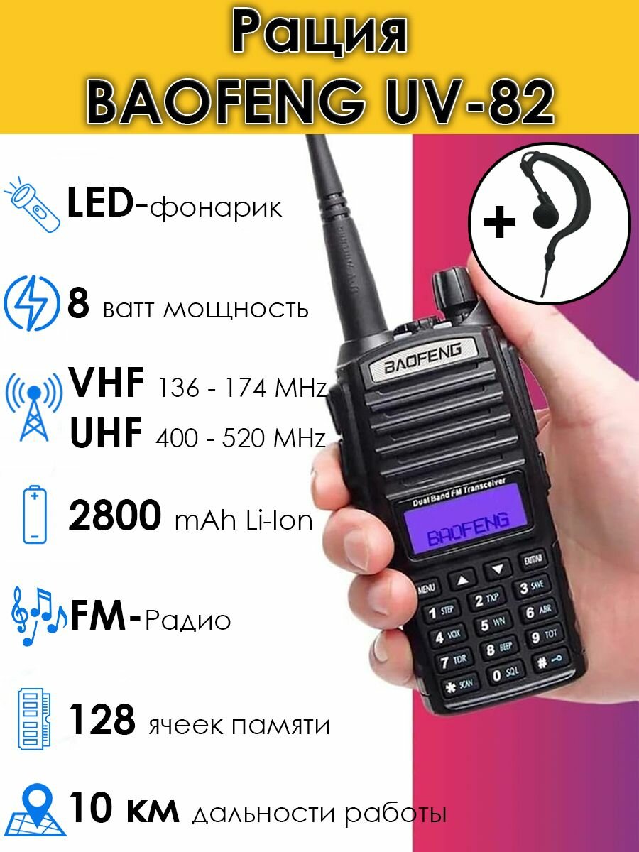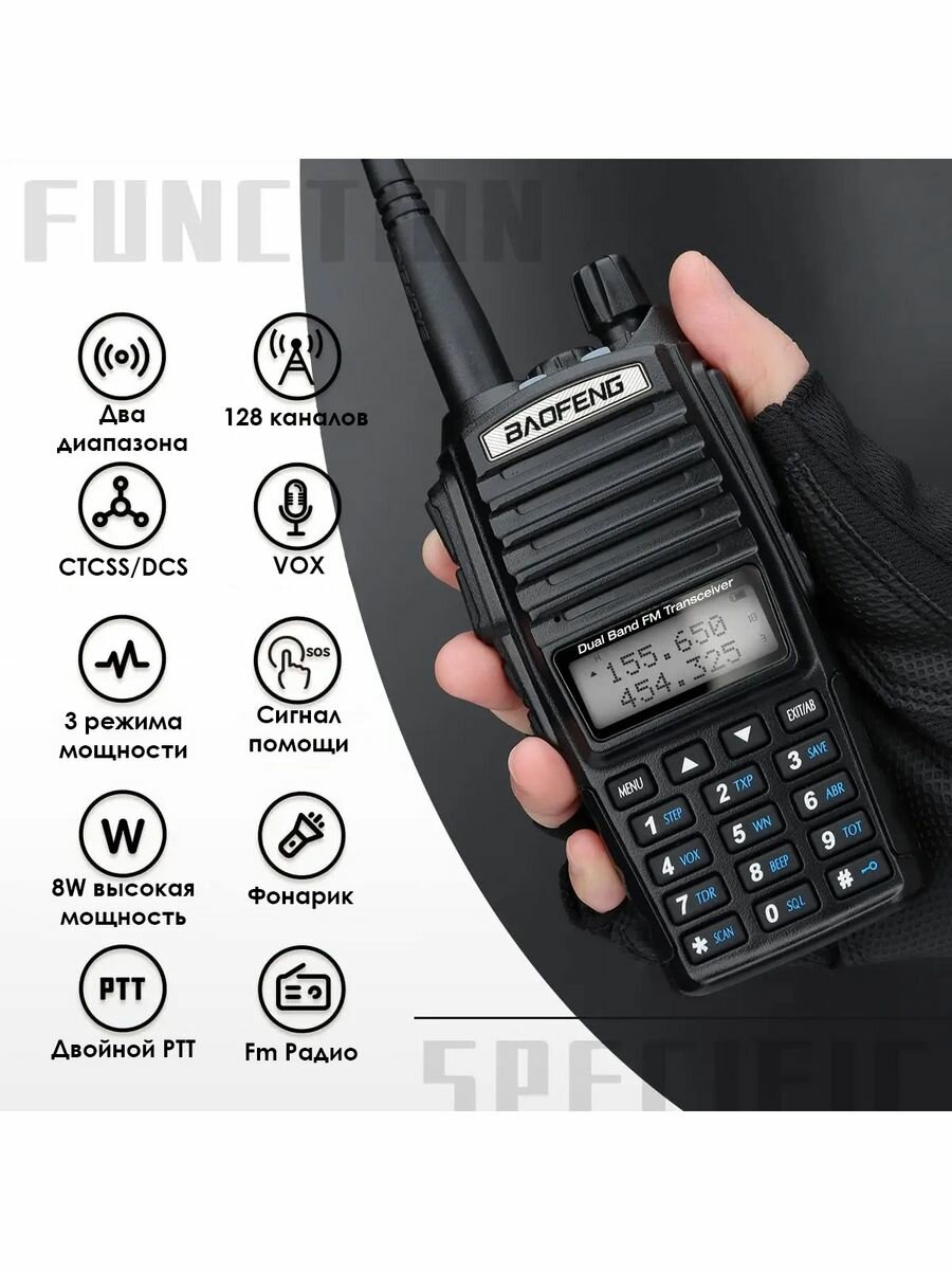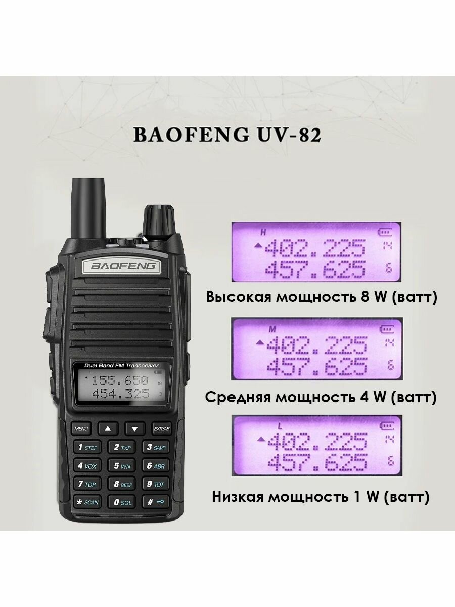 Рация Baofeng UV-82 Баофенг (8W) 3 режима мощности 2800 мА*ч интересное: