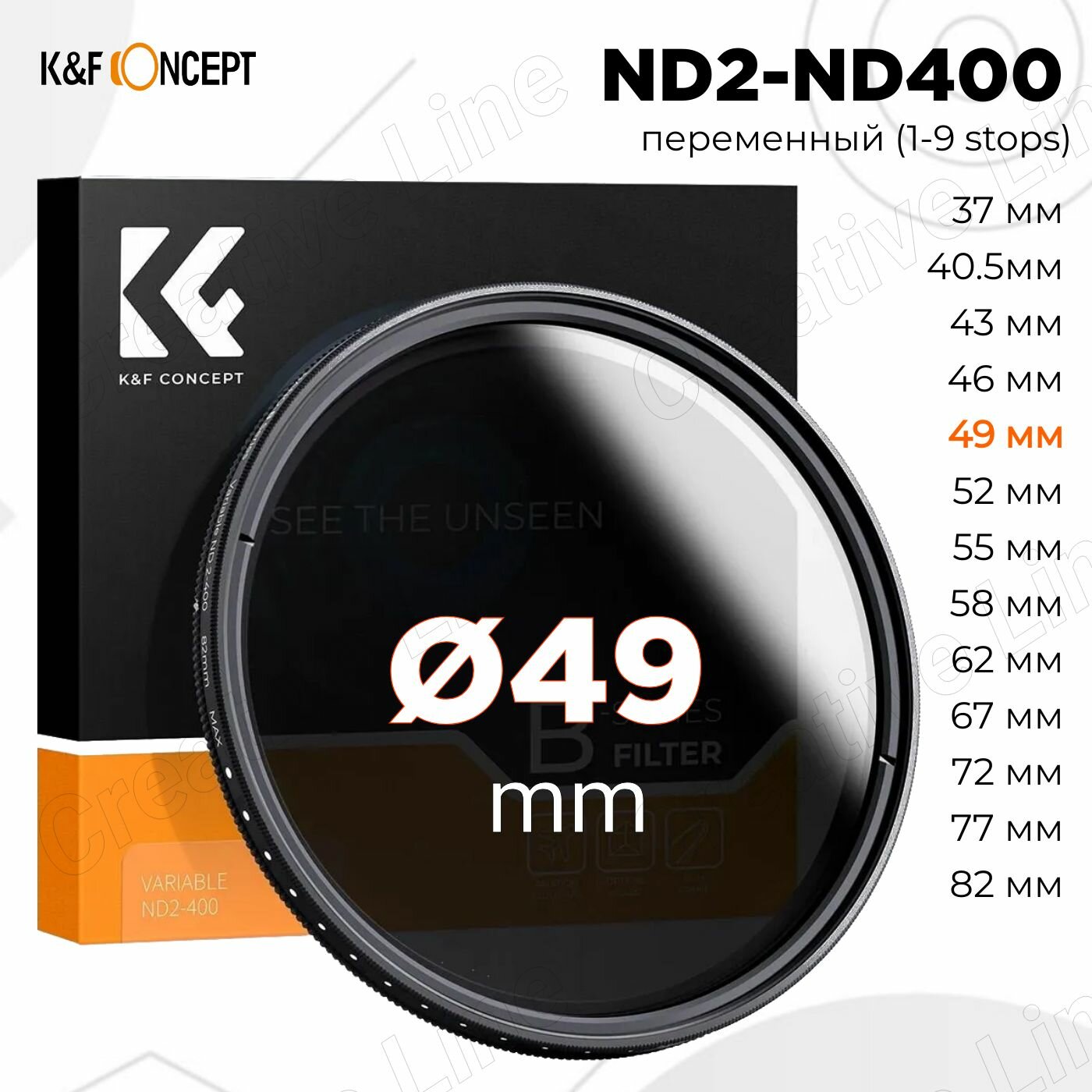 Купить K&F Concept Variable ND2-ND400 / 49mm / Переменный нейтральный фильтр