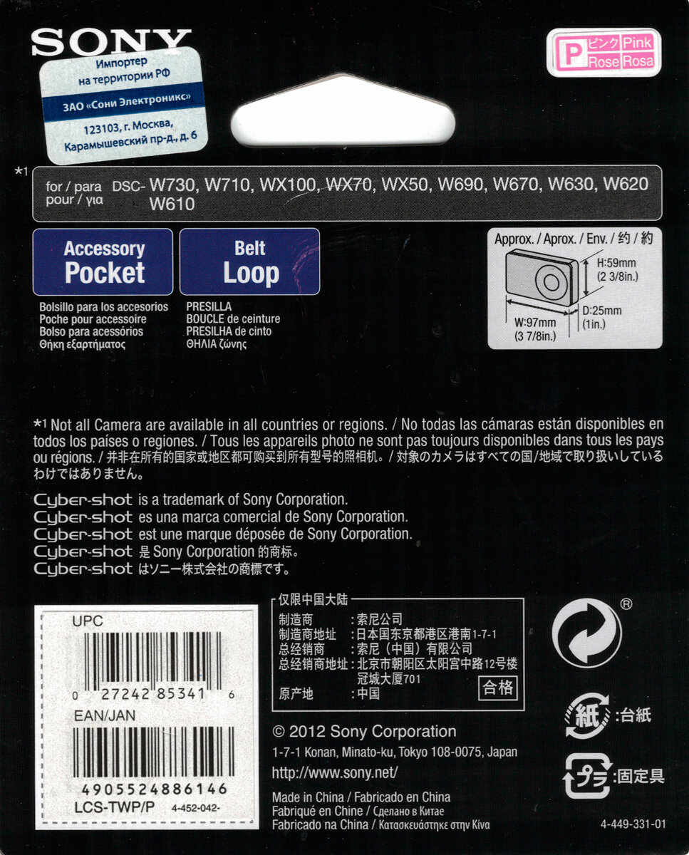 Чехол для фотокамеры Sony LCS-TWP Pink розовый, жесткий для фотоаппаратов Cyber-shot серий W/ WX (LCSTWPP.SYH) интересное: