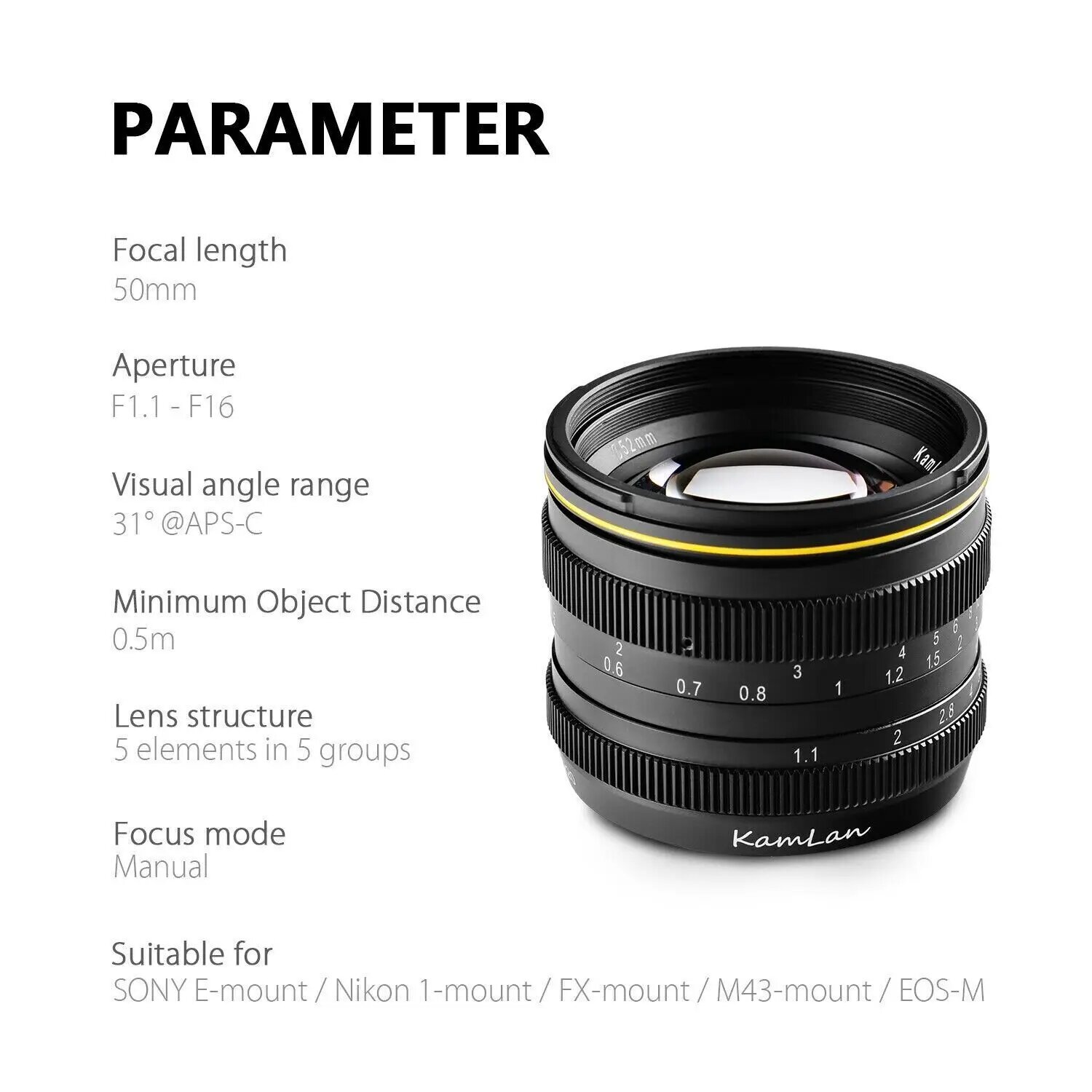 Объектив Kamlan 50 мм f1.1 APS-C Для беззеркальных камер Canon EOS-M SONY E-Mount Fuji X M4/3, объектив с ручной фокусировкой и большой апертурой интересное: